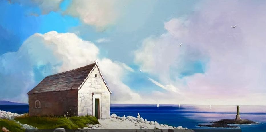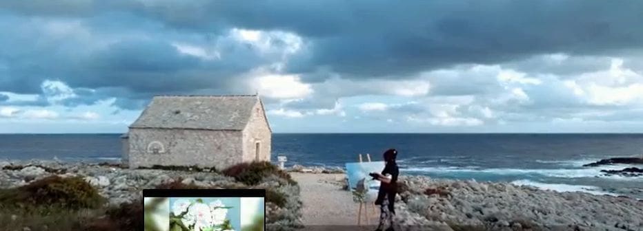 -Znam na koju sliku mislite, ta slika se zove: Jutro na Punta Planci (ulje na platnu 130X80), 2020. Ružičasti i plavi tonovi mirnog neba iznad crkve Ivana Trogirskog, u pozadini morski krajolik i svjetionik. Ja svaki dan idem prošetati do te crkvice nedaleko od moje kuće. Baš svaki dan - to je zakon! I to mi daje snagu razmisliti o svemu, neke nove ideje uvijek dolaze na putu, tišina i priroda gaje nevjerojatan osjećaj ugodnosti. Svježi vjetar prozračiti na putu i dušu i tijelo. Omiljena lokacija. Najviše ideja za slike dođe tim putem - od kamena s pogledom na more.