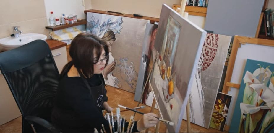 -Hvala vam na interesu za moje radove. To mi je izuzetno drago. Evo pokušat ću odgovoriti na to vaše pitanje. Moj suprug i ja uvijek smo sanjali mirovinu dočekati negdje na moru i imati malenu galeriju-radionu oko kuće, i raditi svoj omiljeni posao i uživati u tome. Trenutno sam u procesu ostvarenja tih želja. Oboje smo akademski umjetnici: on je kipar, a ja sam slikarica. Ali život je tako složio da je suprug morao cijeli život zarađivati i raditi i time je davao meni mogućnost da radim svoj posao kroz cijeli život. Ja sam se uvijek bavila i bavim se slikarstvom. Ali želja nam je da budemo zajedno i da zajedno uživamo u onome što volimo. Onda smo birali to mjesto u kojem bismo uživali. Tako smo došli vidjeti Hrvatsku. Jako je slična s jezikom. Mi smo sa Lavova, to nije daleko od granice s Mađarskom i jako dobro razumijemo Hrvate. Pa gotovo 70% riječi su jasne i slične. Onda se osjećaš kao da si doma. Jako dragi ljudi, to je taj slavenski mentalitet i zato se osjećam tu kao doma.