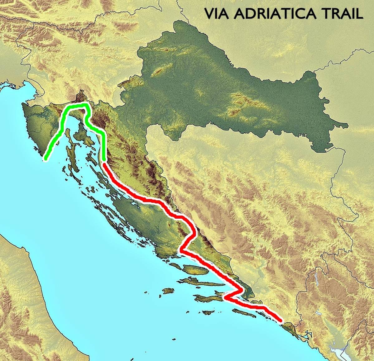 Projekt nazvan Via Adriatica zamišljen je kao staza duljine 1.080 kilometara koja povezuje najatraktivnije planinske masive, vrhove i predjele duž Jadranske obale, od Istre do Prevlake, prolazi kroz tri nacionalna parka, tri parka prirode, šest značajnih krajobraza, tri posebna rezervata i cijeli niz zaštićenih područja, a većim dijelom pruža prekrasan pogled na Jadransko more i otoke.