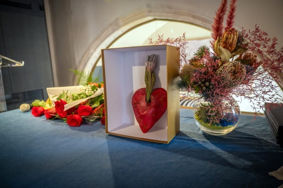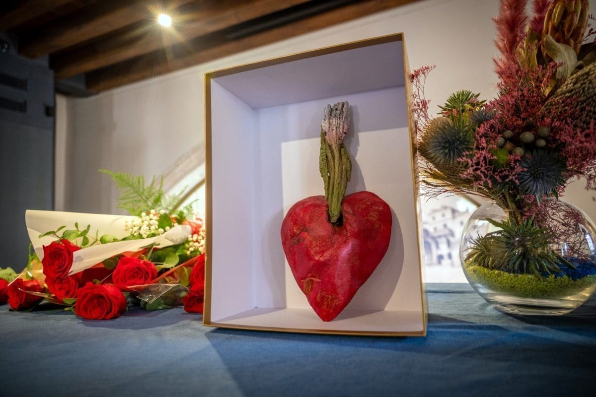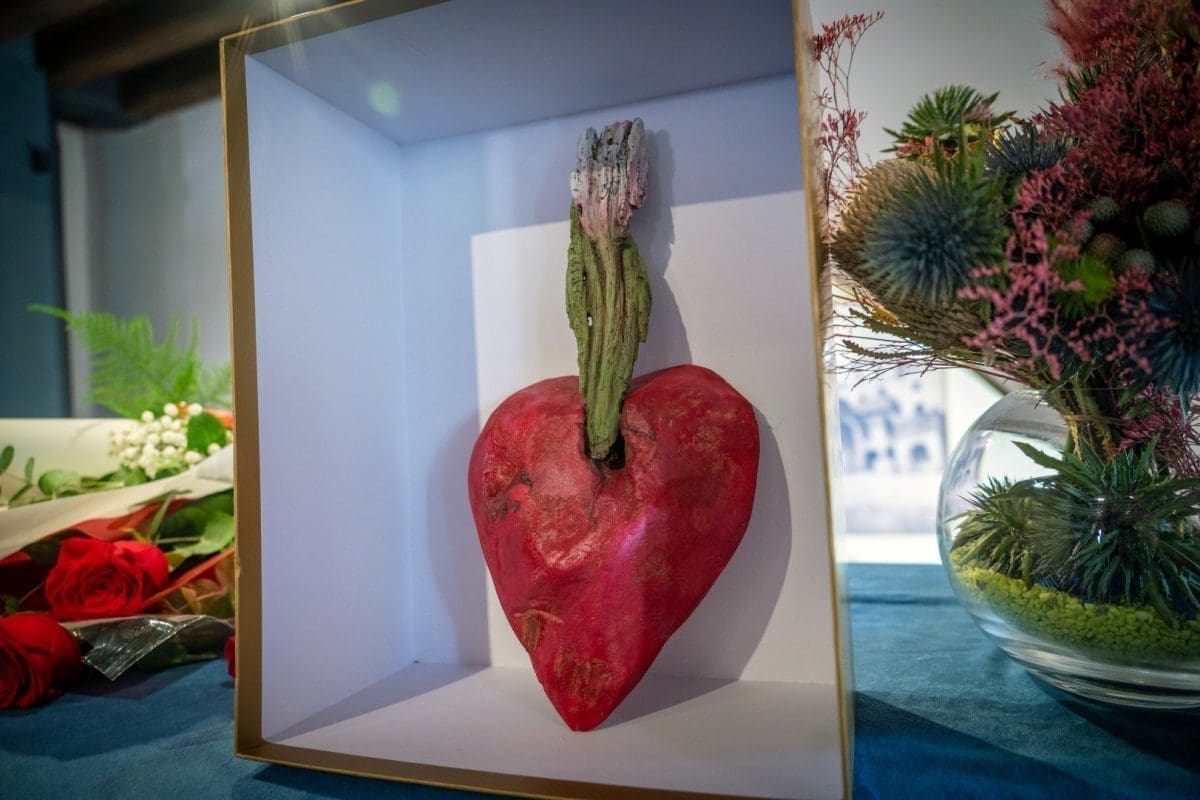 Izložba je bila otvorena taman prije no što sam radila na skulpturi za Splitski cvit. Kako sam još uvijek bila u tom ozračju, nekako se posložilo da i ova skulptura bude povezana sa srcem. Imala sam malo vremena, no inspiracija me povukla i sve se brzo posložilo. Tako je nastala skulptura u drvu koja prikazuje srce iz kojeg raste cvijet.