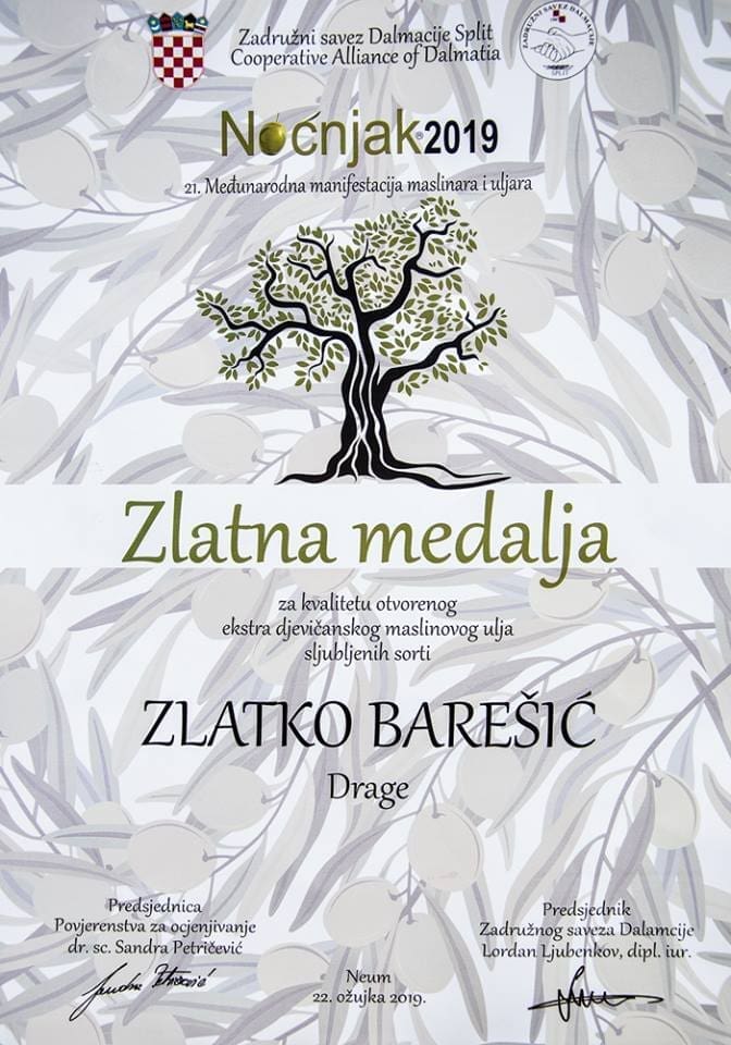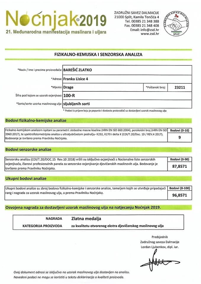 Tako ove godine među najbolje plasiranima nije bilo ulja iz Dalmacije. O Noćnjaku i drugim temama porazgovarali smo s najboljima iz Zadarske županije, Zlatkom Barešićem iz Draga.