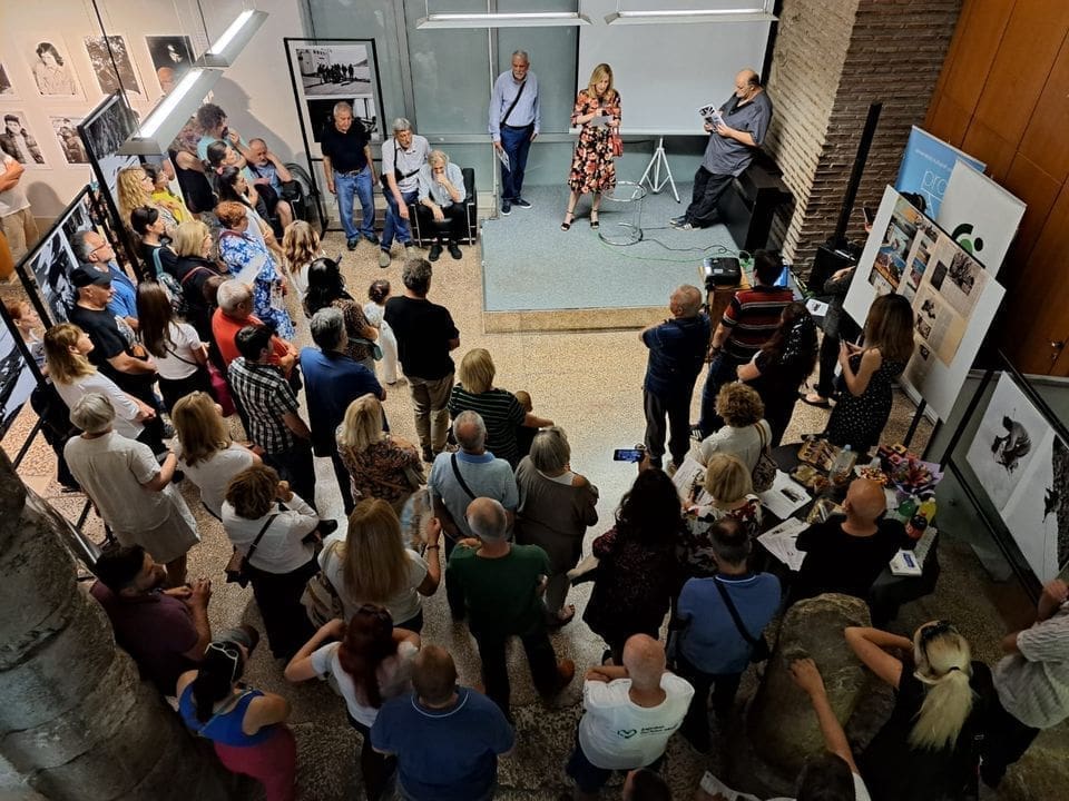 Kaže nam da se film inače vrti za vrijeme izložbe i može ga se pogledati usput dok se gleda izložbu, ali danas se održava posebna projekcija.