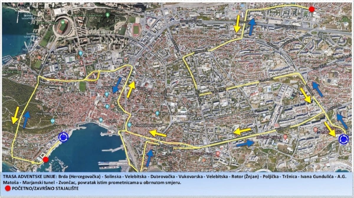 Od subote 27. studenoga od 16 sati do 2. siječnja 2022. splitski Promet uvodi adventsku liniju koja će prometovati na relaciji Brda – Zvončac i obratno, svakih sat vremena petkom, subotom i nedjeljom.