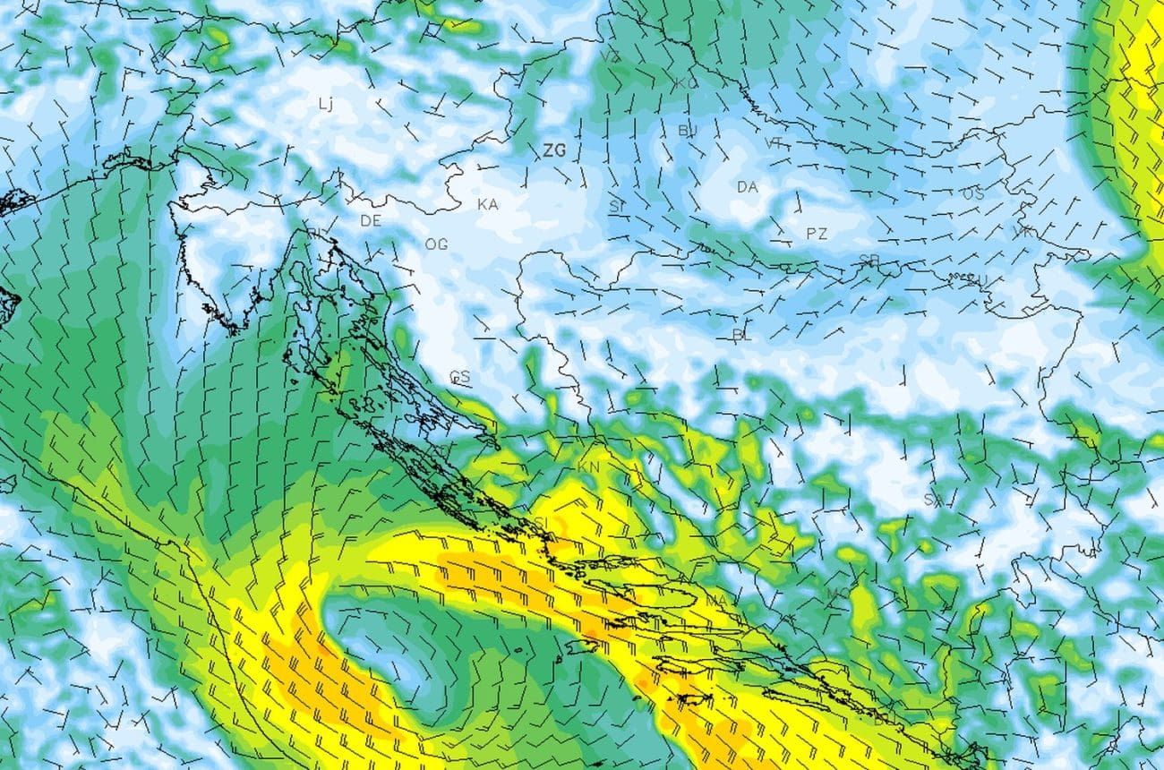 Danas nas očekuje pretežno sunčano i suho vrijeme. Na većem dijelu Jadrana puhat će slaba do umjerena, podno Velebita i jaka bura. Na moru srednje u južne Dalmacije umjereno jugo. Minimalne jutarnje temperature zraka od -6 do 0°C u Dalmatinskoj zagori, od 0 do 7°C uz obalu i na otocima. Najviše dnevne temperature od 7 do 13°C.