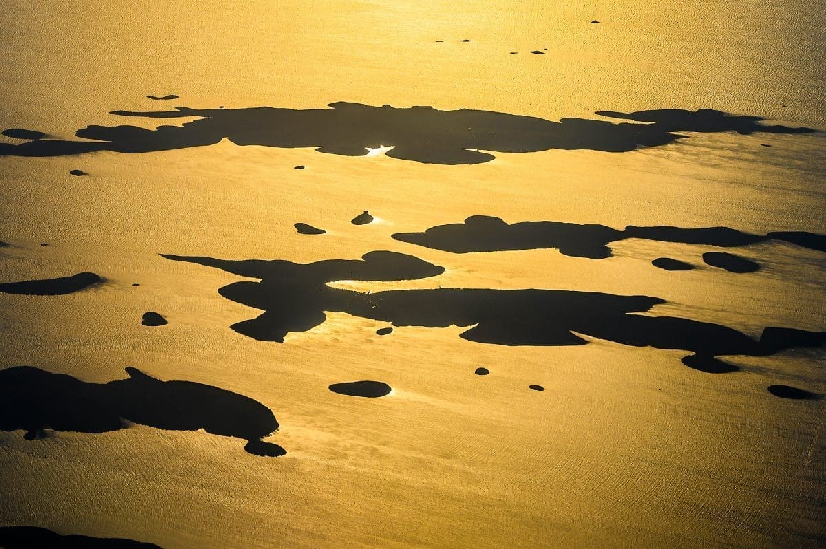 U nedavnom preletu preko dalmatinskih otoka snimili smo dva prizora u smiraj dana, a vi pokušajte pogoditi o kojim otocima se radi. Radi se o snimkama koje su nastale s oko 11 kilometara visine.