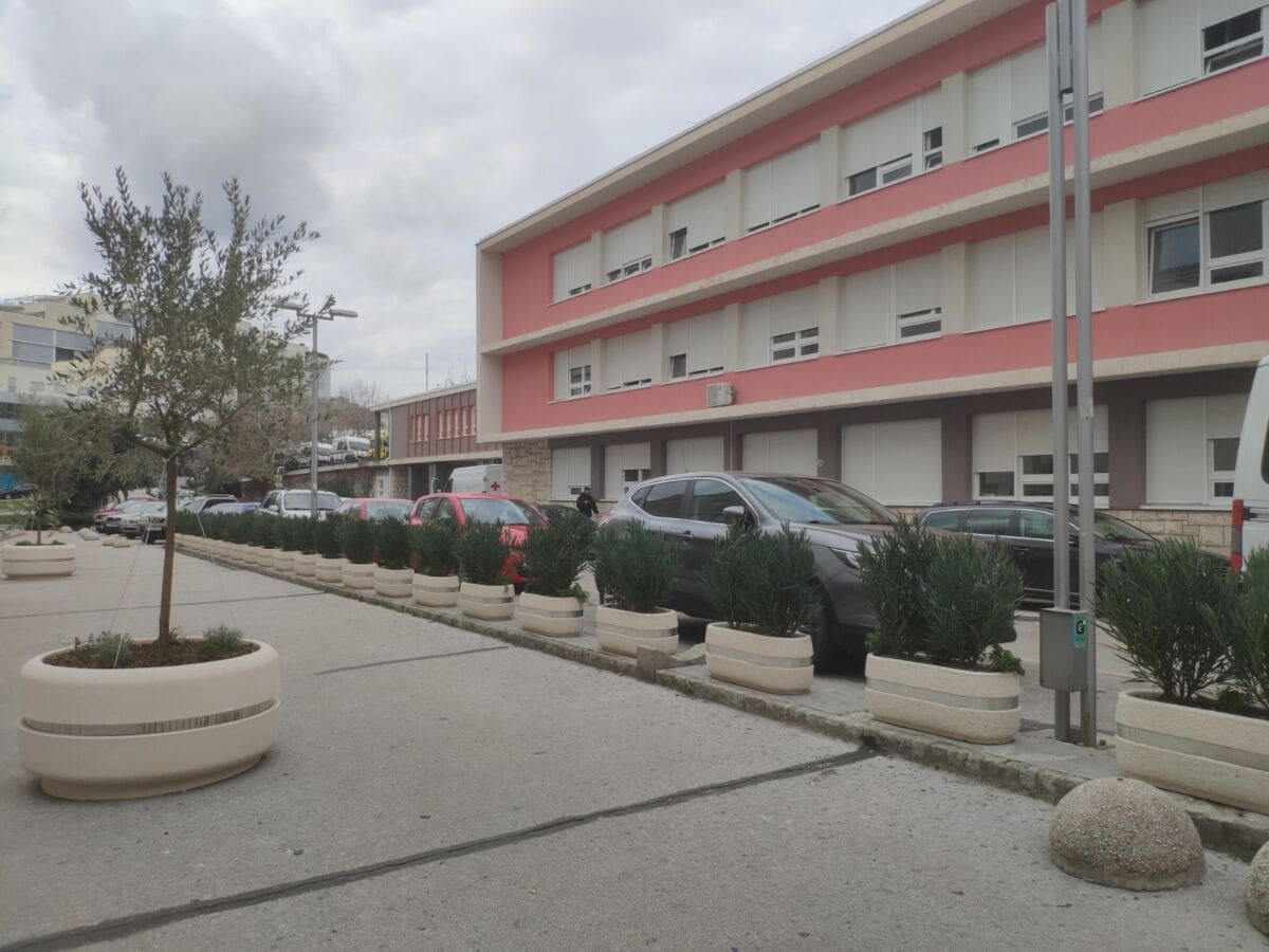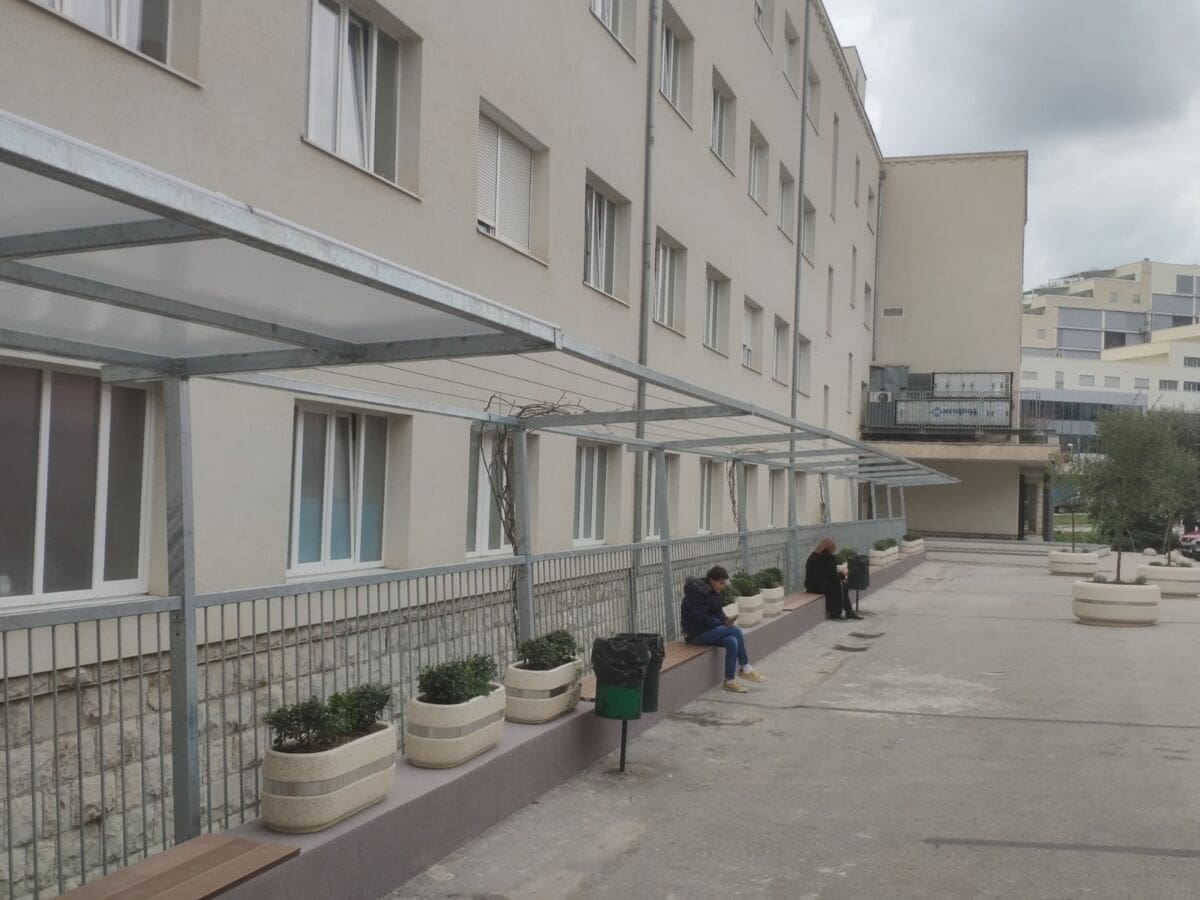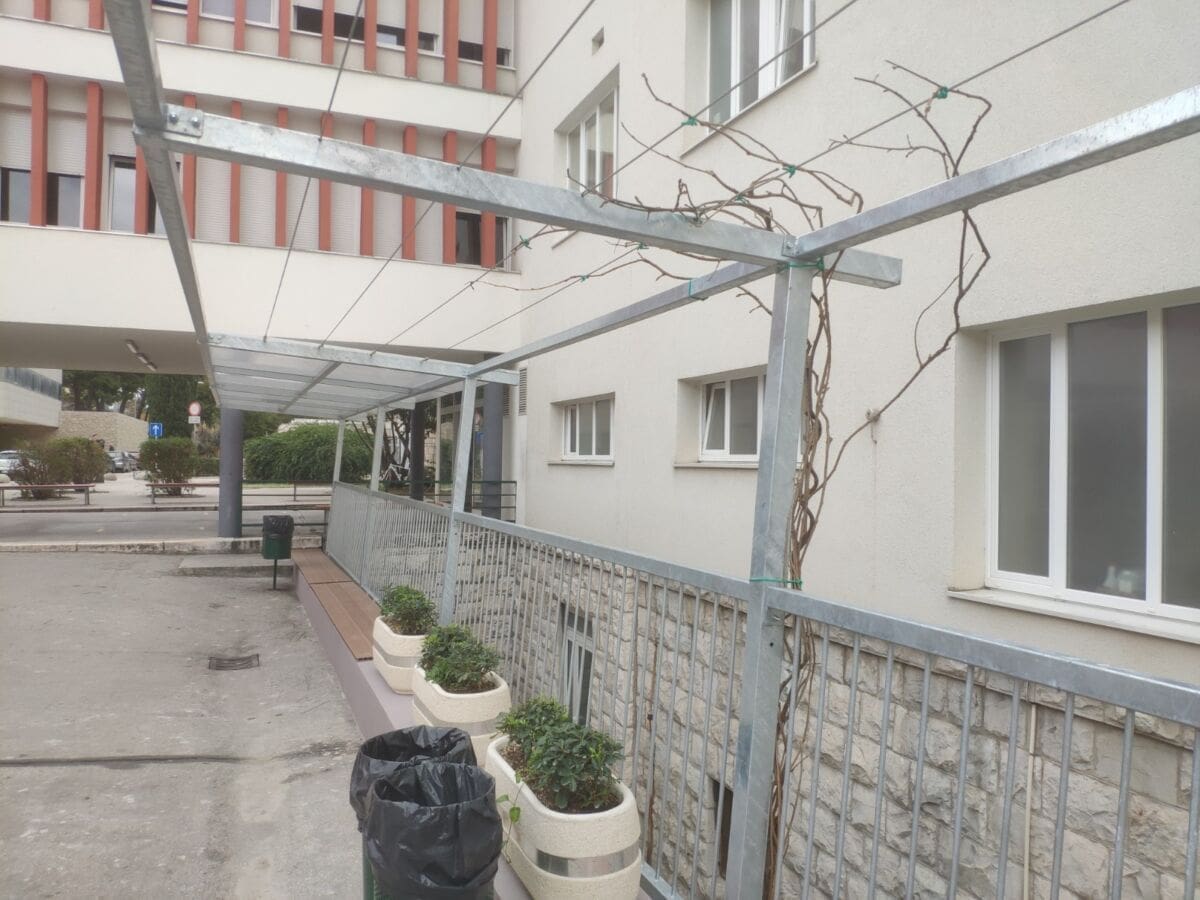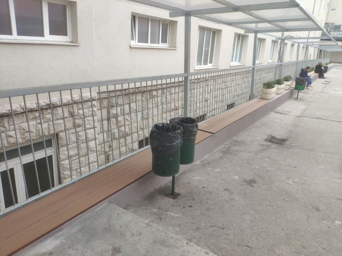 Klupice i nadstrešnica postavljeni su uz bočnu stranu splitske bolnice, prije glavnog ulaza. Nekada je tu stajao samo zidić ispod kojeg je bila - provalija. No, od nedavno je taj dio sigurniji za posjetitelje.
