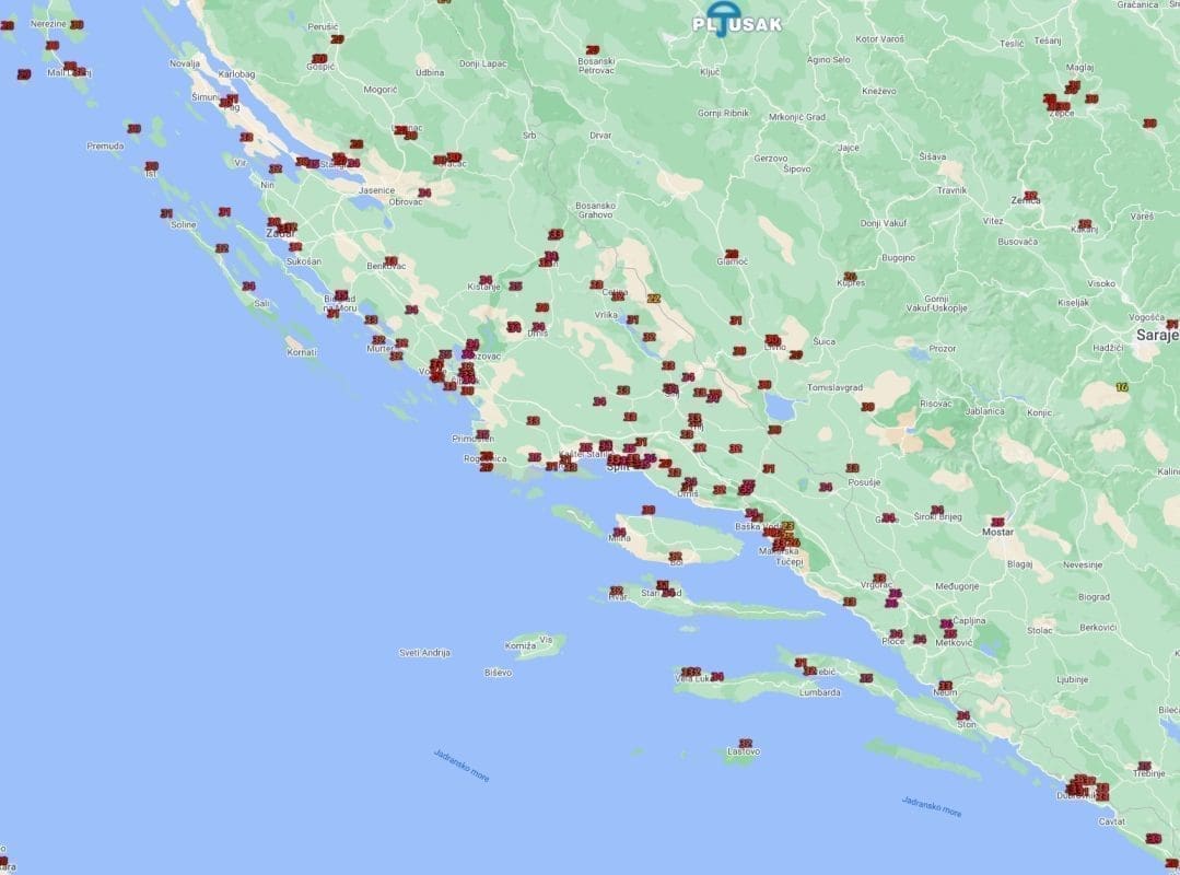 Dalmacija je danas najtopliji dio zemlje s temperaturama zraka koje su gotovo posvuda iznad 30°C.