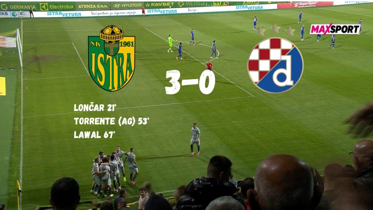 Nogometaši Istre 1961 i Dinama danas su od 18:45 igrali utakmicu 28. kola SuperSport HNL-a na Aldo Drosini. Slavila je domaća momčad rezultatom 3:0 i u nevjericu bacila Zagrepčane koji su ovom pobjedom otišli korak unatrag ka prvom mjestu.