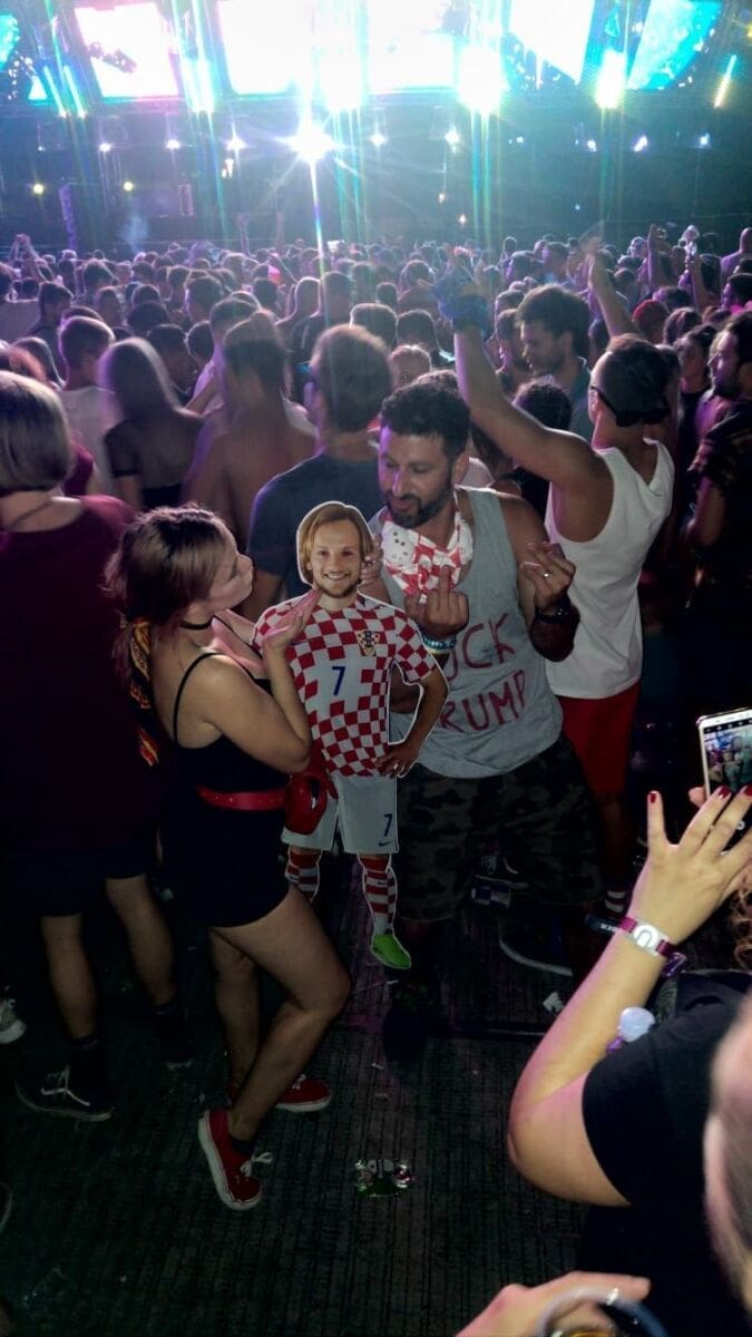 Jedan od posjetitelja posvuda je sa sobom nosio kartonski lik omiljenog igrača reprezentacije, što su mnogi partijaneri dočekali s oduševljenjem i iskoristili priliku fotografirati se s njim. Muškarac koji je nosio 'Rakitića' zaustavljao je sve one koji su nosili zastave država koje je Hrvatska reprezentacija već pobijedila, ali i državljane Engleske, Francuske i Belgije.
