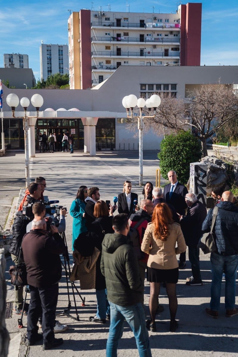 Na platou između III. gimnazije i Fakulteta građevinarstva, arhitekture i geodezije u Ulici Matice hrvatske 15, održana je konferencija za medije pod nazivom "Zanemarivanje obrazovanja u Splitsko-dalmatinskoj županiji".