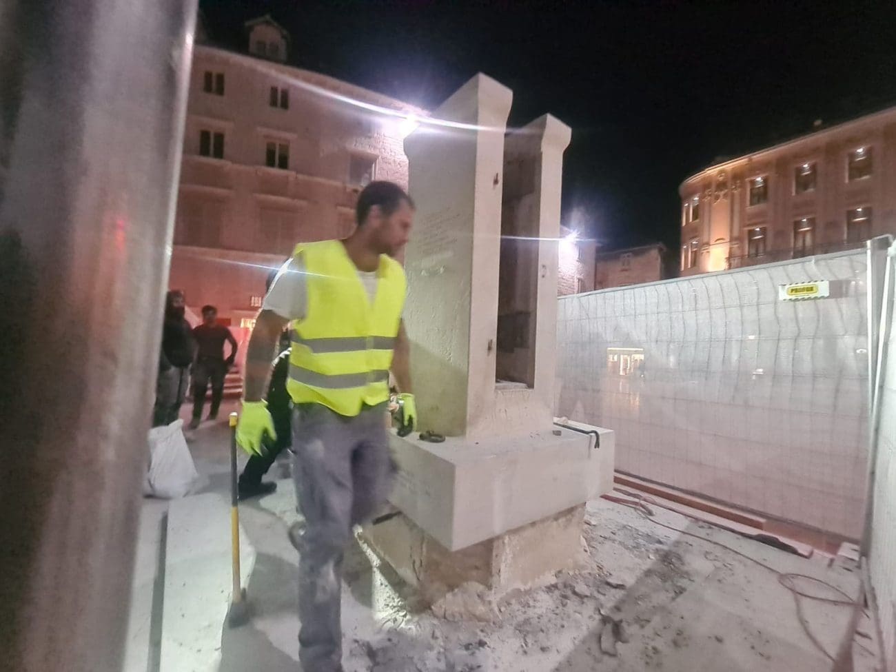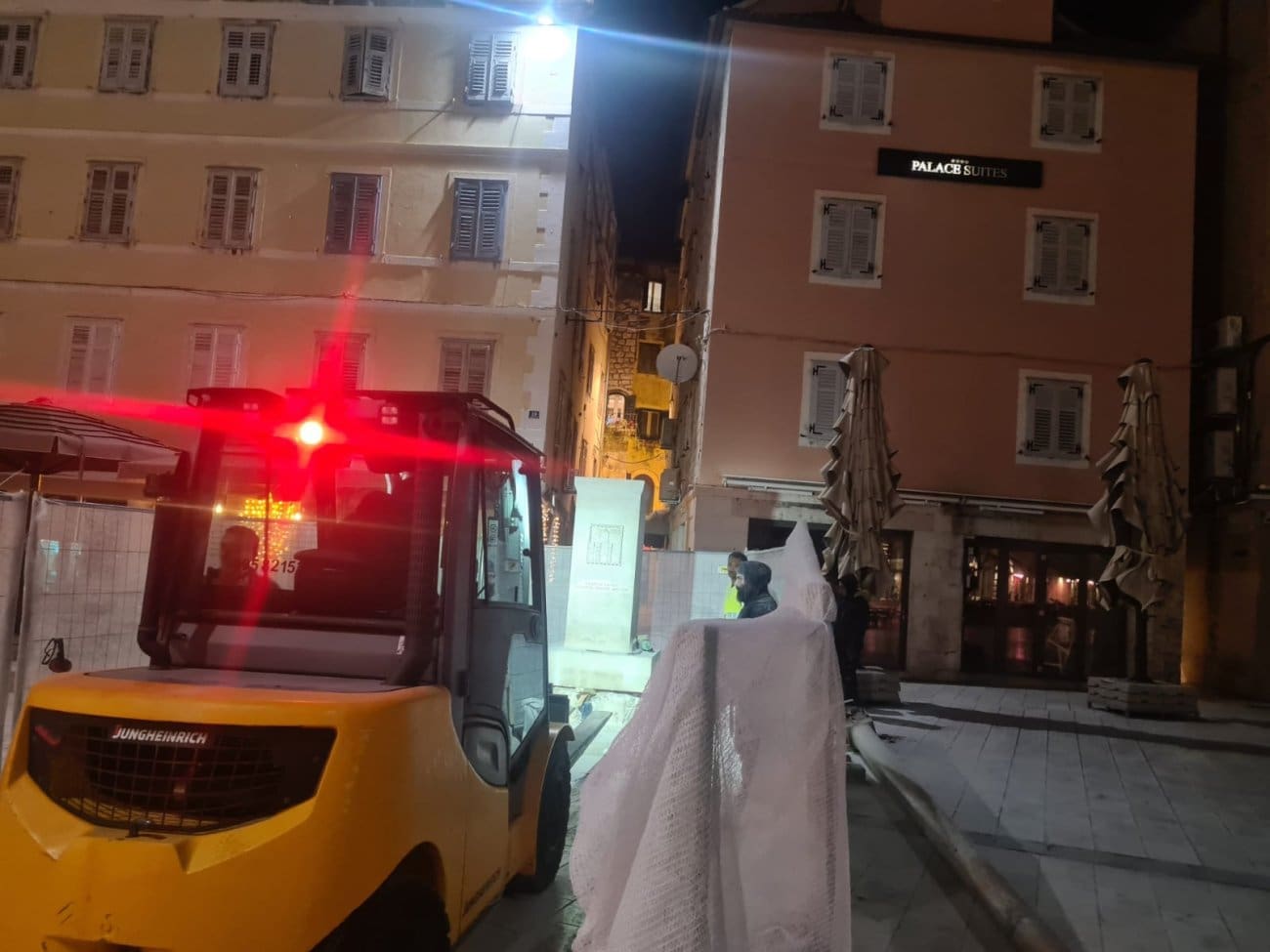 Kako su iz splitske gradske uprave i najavili, danas su započeli pripreme za uklanjanje štandarca s Pjace. Ova odluka donesena je nakon presude Trgovačkog suda, koja nalaže uklanjanje natpisa s datumom oslobođenja Splita od fašizma sa spomenika, temeljem tužbe kipara Kuzme Kovačića.