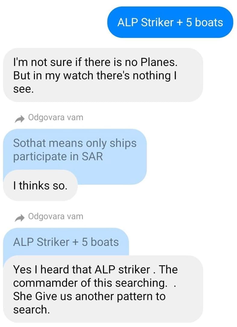 Nije mogao više razgovarati jer u potrazi za nestalima na ogromnom oceanu dragocjeni su svaki čovjek i svako oko, no uskoro se nadamo dobiti i nešto više informacija.