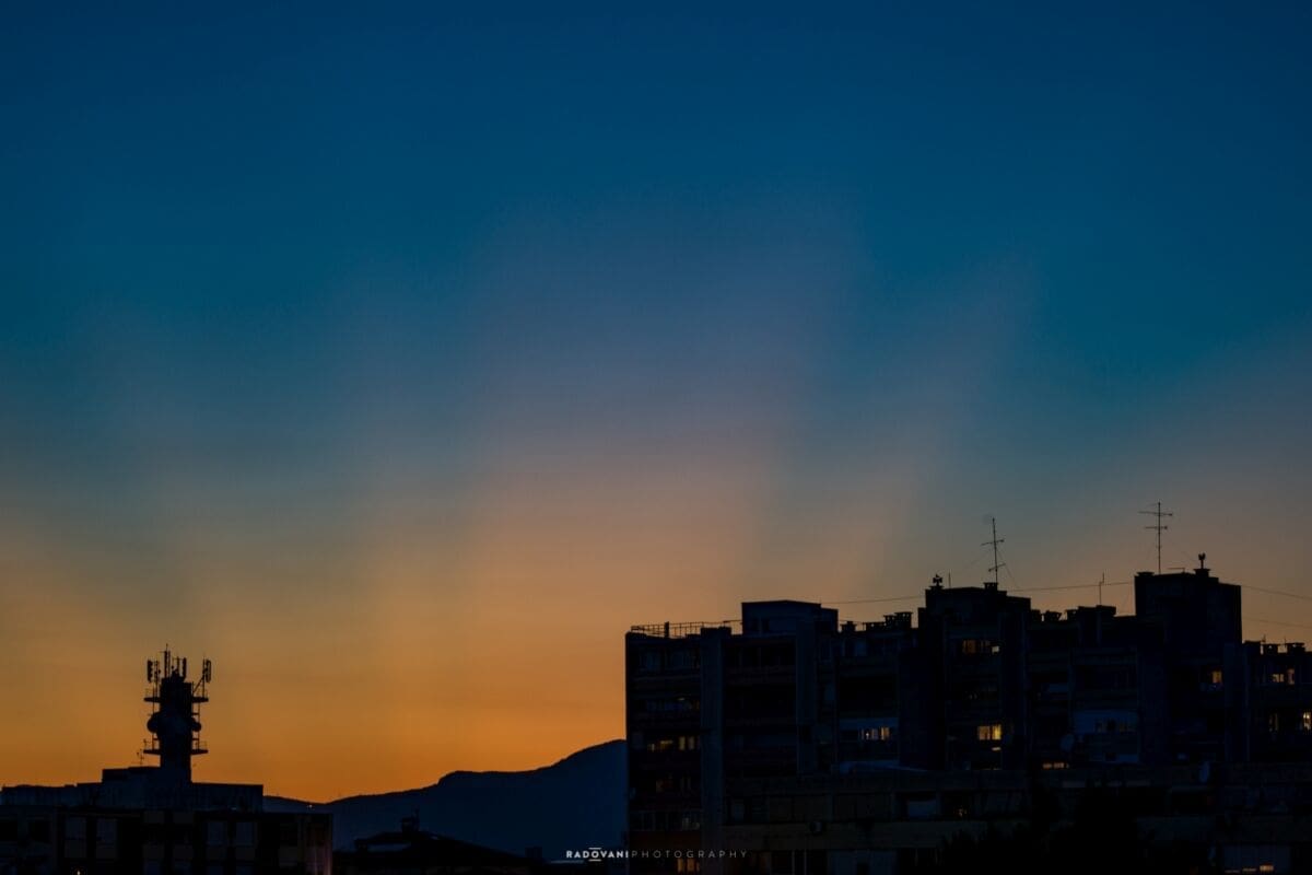 U cijeloj Dalmaciji u ponedjeljak se mogla vidjeti zanimljiva pojava nakon zalaska Sunca. Naime, na nebu iznad sjeverozapadnog horizonta vidjele su se zrake sunca i sjene koje su stvarali udaljeni oblaci.