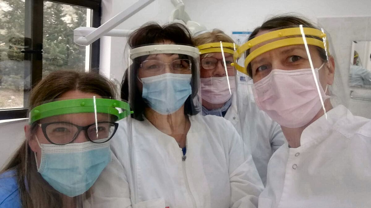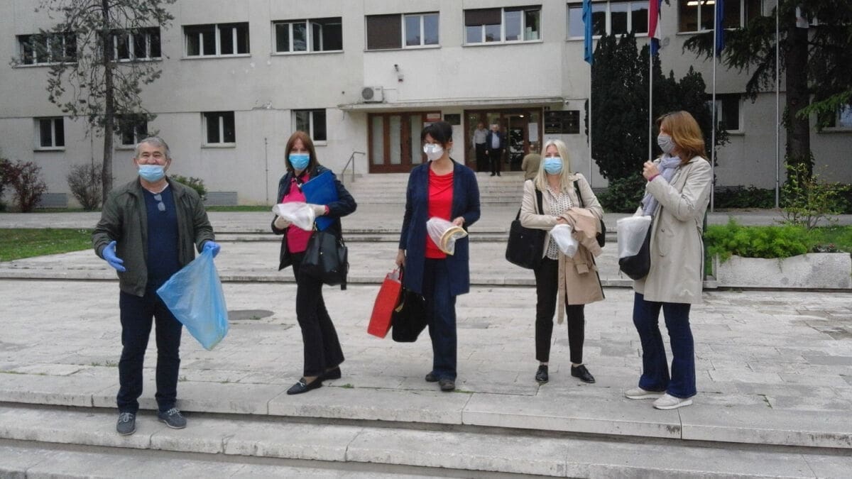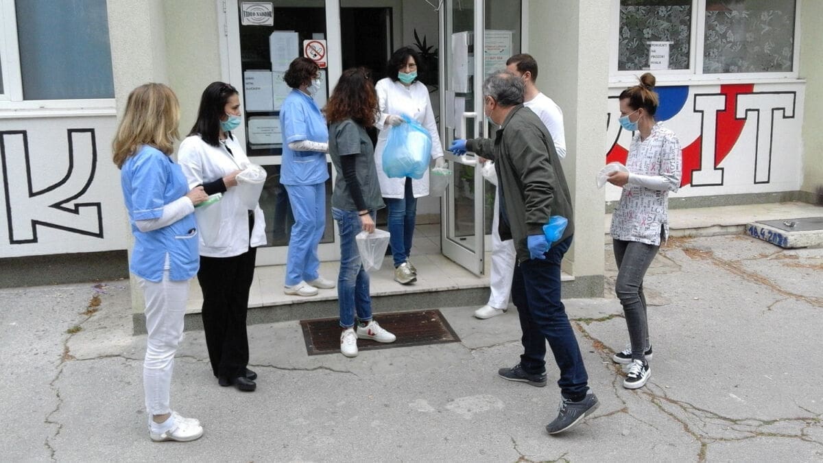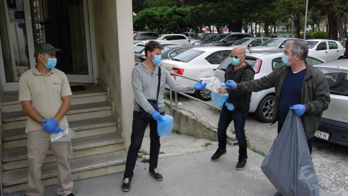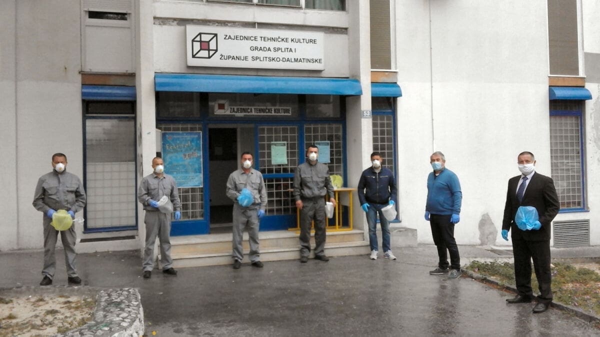 Djelatnici ZTK, v. d. tajnika Tomislav Nikolić i astronom-animator Zvjezdanog sela Mosor Zoran Knez, jučer su donirali vizire inspekcijskom timu stožera Civilne zaštite Splitsko-dalmatinske županije, liječnicima, stomatolozima, medicinskim tehničarima i sestrama Doma zdravlja Splitsko-dalmatinke županije u Šibenskoj ulici (Kman), djelatnicima tvrtke Cian d.o.o., koji vrše dezinfekciju zdravstvenih ustanova, te djelatnicima Tiska d.o.o.