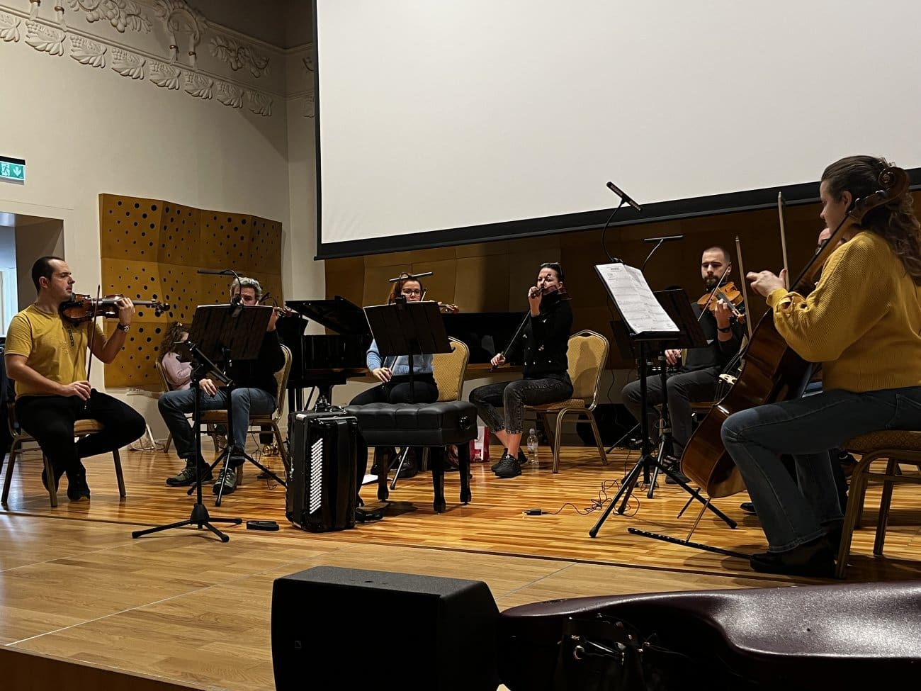 Gudački ansambl čine: Mislav Salopek, koncertni majstor, Domagoj Gjurašin, prva violina, Donja Rakoš, vođa drugih violina, Iskra Voltolini, druga violina, Ivor Ivančić, vođa viola, Josip Veselić, viola, Katarina Evetović, vođa violončela, Hillary Karuza, violončelo i Piero Malkoč, kontrabas te ostali izvođači: Borna Augustinović, udaraljke i Ana Stanković, klavir.