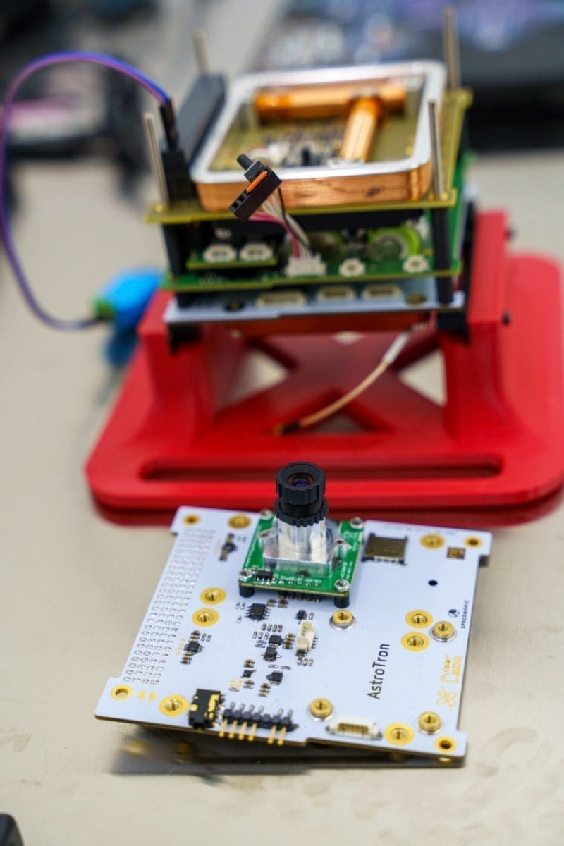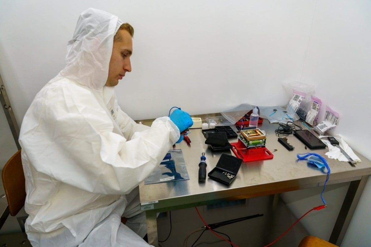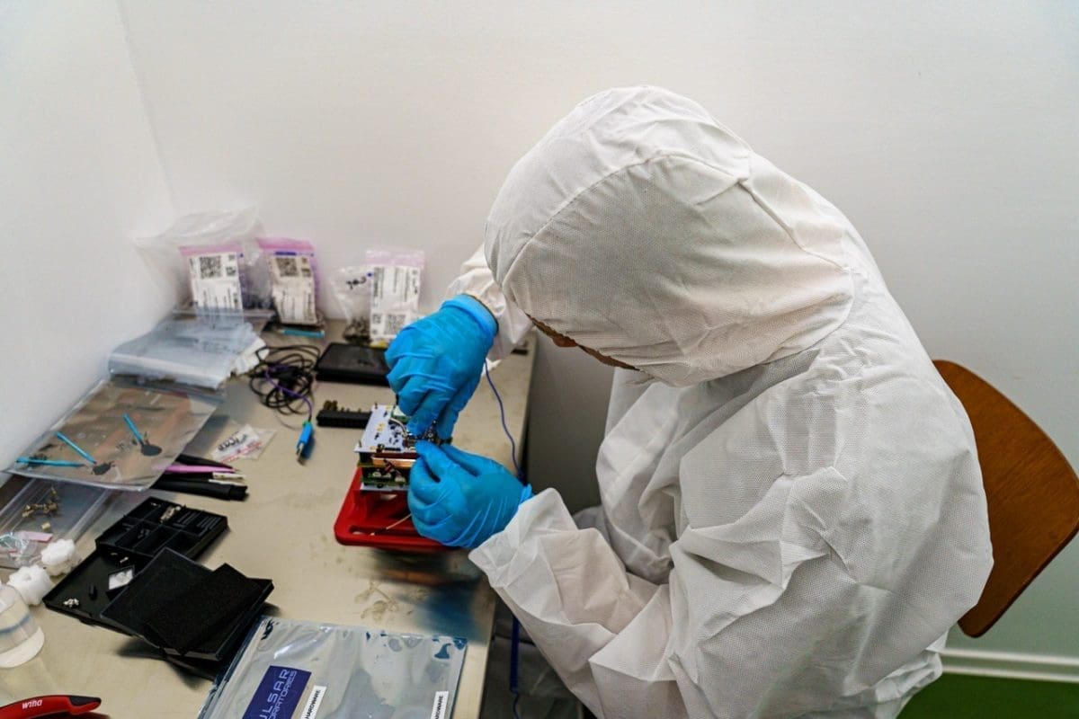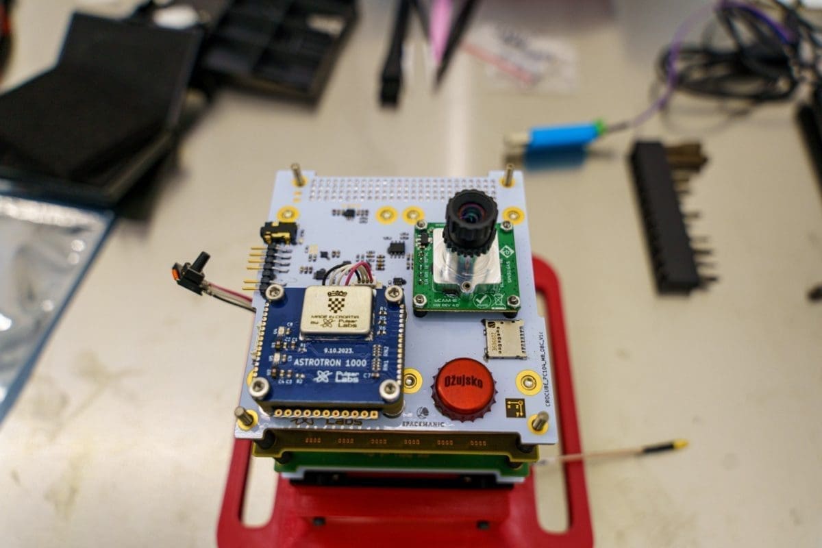 - Prvo smo izradili i pripremili sve dijelove potrebne za sastavljanje, tiskane pločice, elektroničke komponente, metalni dio kostura itd. Dalje smo išli u čistu sobu u sklopu Prirodslovno-matematičkog fakulteta u Zagrebu, na odsjeku za Fiziku, koji ju nam je ljubazno ustupio na korištenje. Tamo smo u čistim uvjetima kroz nekoliko dana sve dijelove sklapali i testirali da sve radi nakon sklapanja.