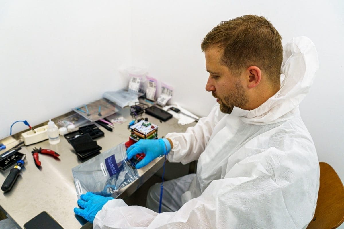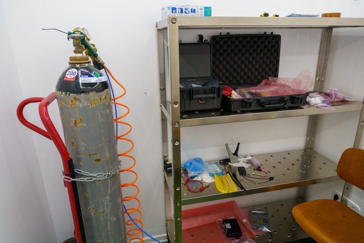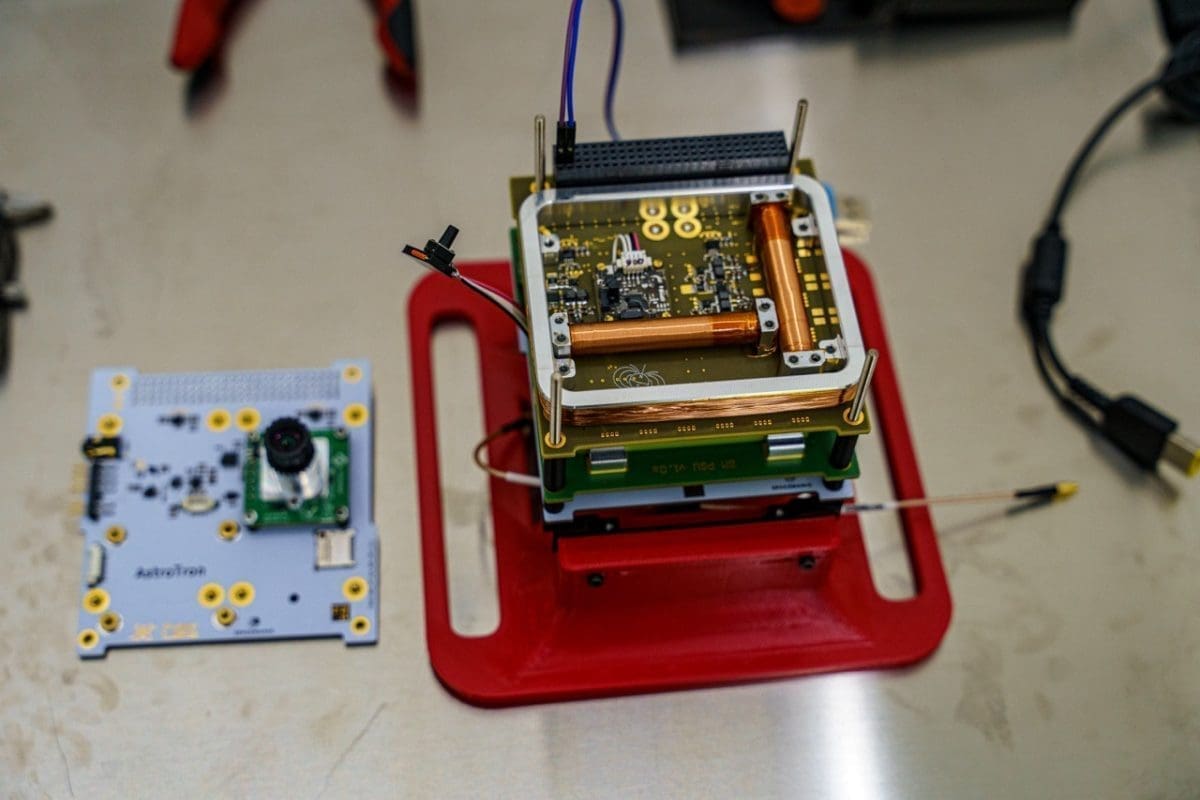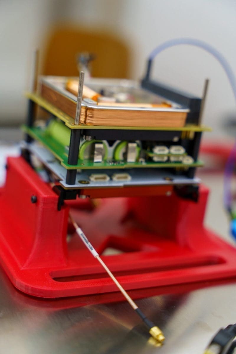 - Prvo smo izradili i pripremili sve dijelove potrebne za sastavljanje, tiskane pločice, elektroničke komponente, metalni dio kostura itd. Dalje smo išli u čistu sobu u sklopu Prirodslovno-matematičkog fakulteta u Zagrebu, na odsjeku za Fiziku, koji ju nam je ljubazno ustupio na korištenje. Tamo smo u čistim uvjetima kroz nekoliko dana sve dijelove sklapali i testirali da sve radi nakon sklapanja.