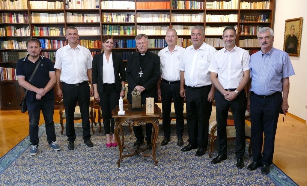 Susretu u Nadbiskupskom ordinarijatu prisustvovali su predsjednik Društva Stipe Jukić, gradonačelnica Sinja Kristina Križanac, članovi Upravnog odbora Ivica Filipović Grčić, Ivo Vukasović i Igor Vidalina, počasni član dr. sc. don Josip Dukić te domaćin i član Davor Benja.