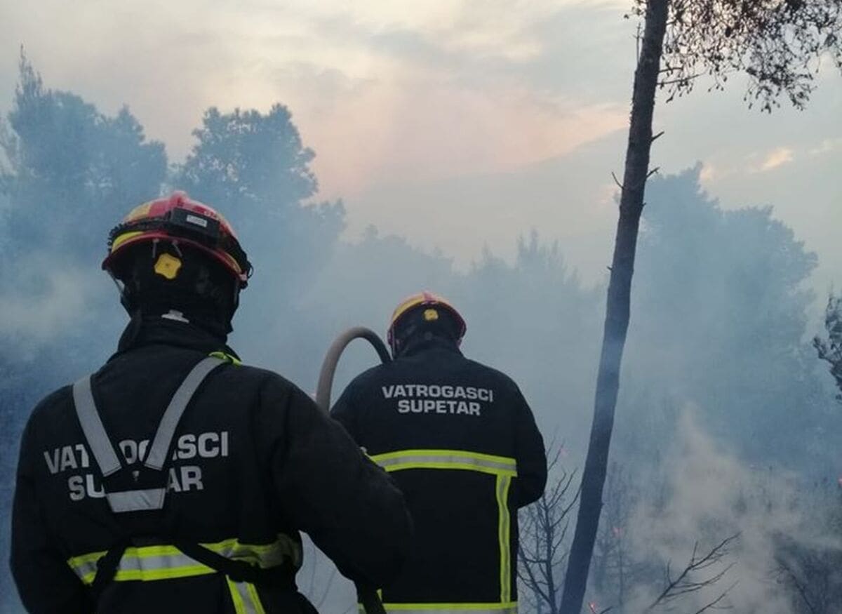 - Gori borova šuma, a objekti nisu ugroženi. Radi se o teško pristupačnom terenu, a vozila ne mogu doći do područja zahvaćenog vatrom.