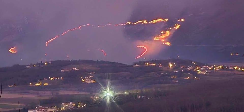 Danas poslijepodne, oko 15 sati, buknuo je požar u podnožju Učke, na području Kožljaka, točnije kod Jasenovika. Na terenu je angažirano 50 vatrogasaca s 15 vozila, a dim se proširio iznad Čepić polja, dok se vatreni obruč jasno vidi izdaleka.