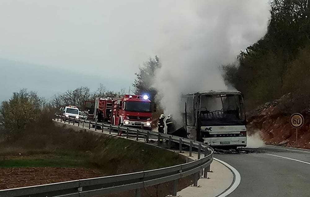 Na cesti Imotski - Cista velika, kod mjesta Krivodol, oko 7 sati je došlo do požara na autobusu koji prevozi pripadnike HV-a na posao u Knin.
