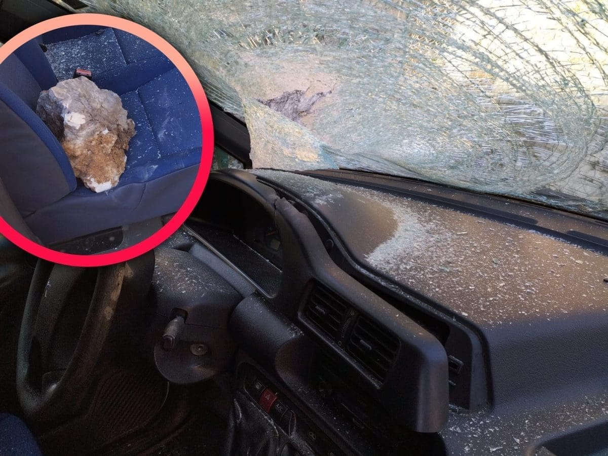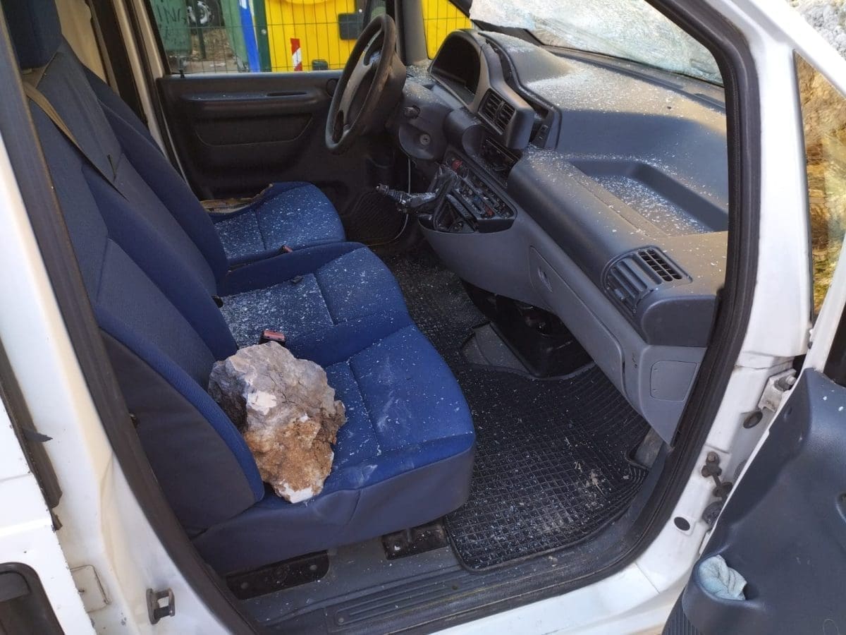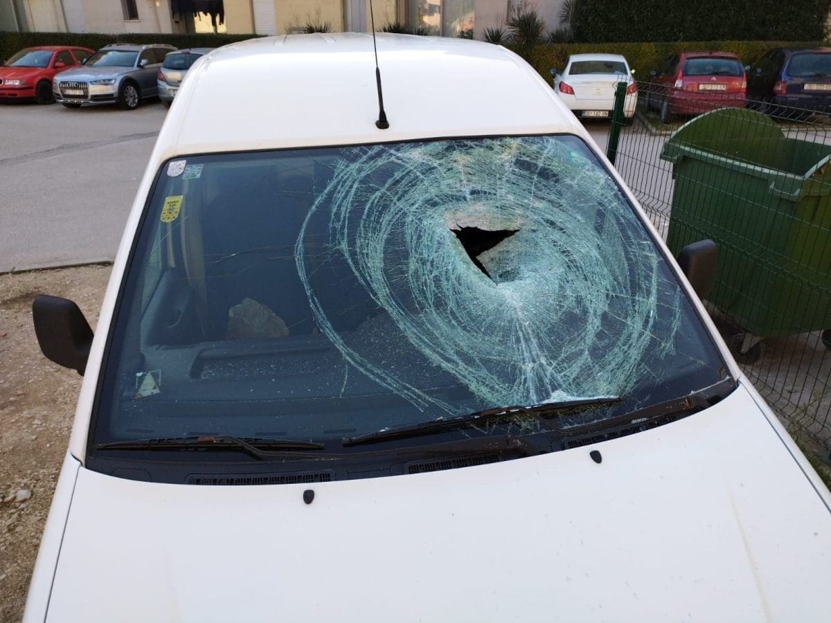 Izbjegnuta je tragedija u Ulici kralja Petra Svačića u Pločama kada je veliki kamen doletio s brda i razbio parkiran automobil.