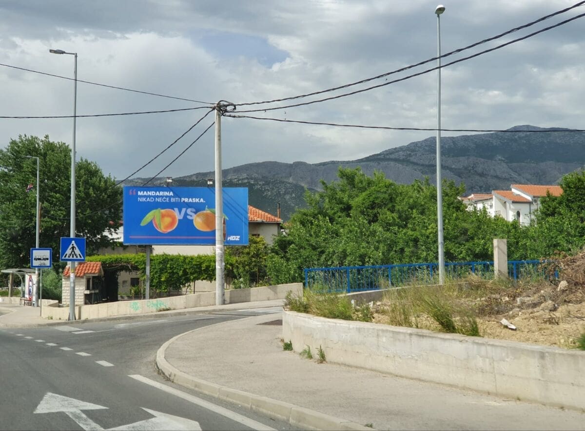 Zanimljiv rat plakatima odvija se u ovoj općini istočno od Splita kao što se može vidjeti na fotografiji u nastavku. HDZ je odabrao zanimljivu taktiku. Naime, poznato je da je praska simbol Podstrane koja se nalazi i u turističkim obilježjima ovog mjesta. S druge strane, Most je stranka koja je potekla iz doline Neretve koja je pak najpoznatija po mandarinama.