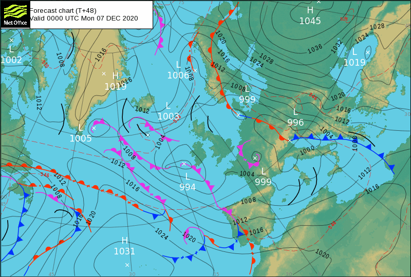 Trenutno se cijela zapadna Europa nalazi u polju niskog tlaka zraka, a nad sjevernom Italijom se formira sekundarni ciklonalni centar. Taj će se centar u nadolazećoj noći i tijekom nedjelje naći nad sjevernim Jadranom što će uvjetovati opasne vremenske prilike na velikom dijelu Jadrana. Na to upozorava DHMZ kroz sustav MeteoAlarm koji je za područje cijelog Jadrana izdao crveni, najviši stupanj upozorenja i to zbog juga. DHMZ predviđa udare juga do orkanskih 130 km/h na cijelom Jadranu, a uz obalu do 90 km/h. Osim na vjetar, DHMZ upozorava na obilne oborine, tijekom nedjelje može pasti do 90 litara kiše po kvadratnom metru.