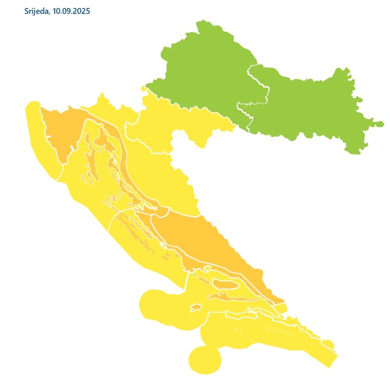 Jedino za Slavoniju i Baranju nije izdano bilo kakvo upozorenje.