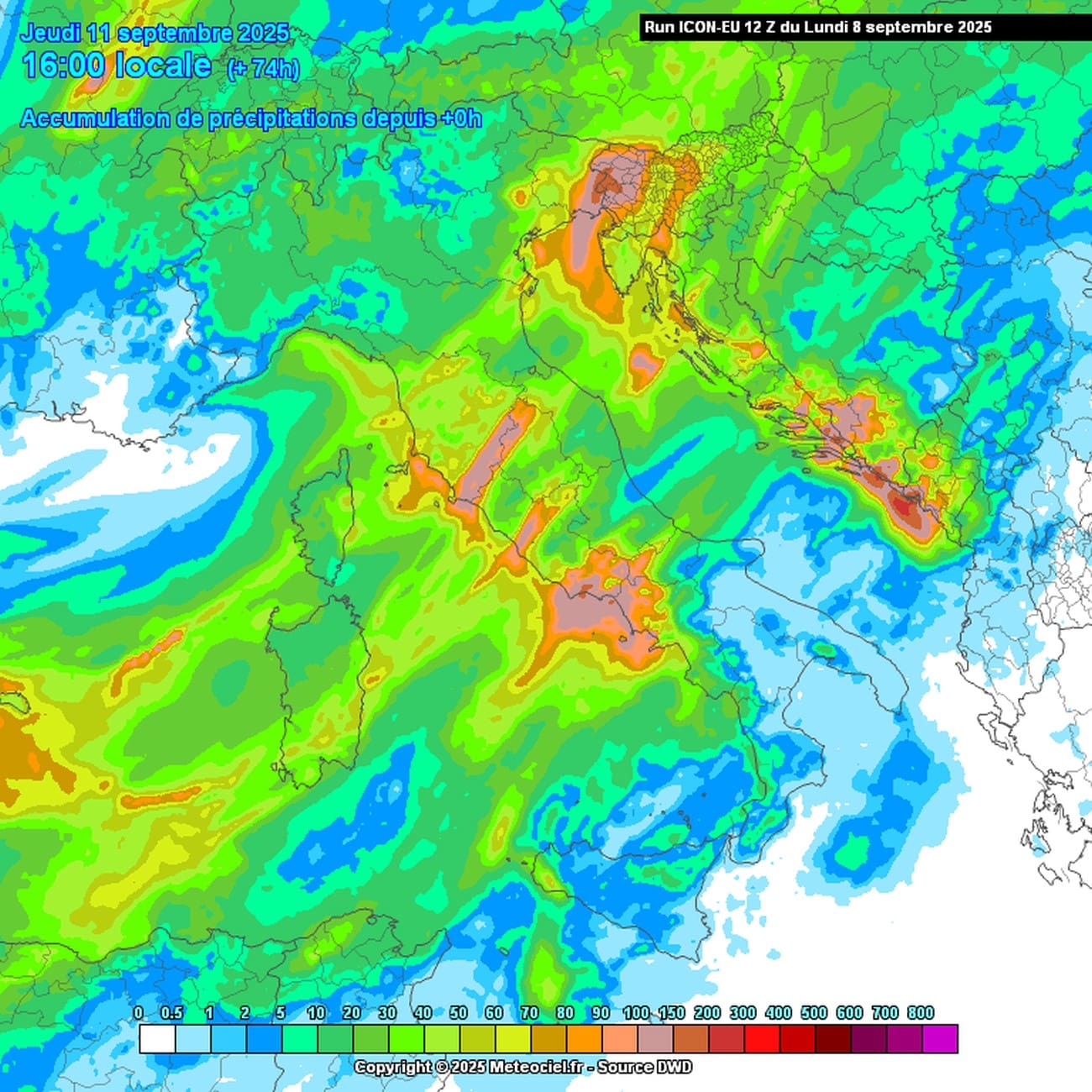 U odnosu na posljednja dva dana, na najnovijim prognostičkim kartama vezanim za nadolazeću promjenu vremena, vide se dva trenda. Prvi je općenito povećanje količine oborina u Dalmaciji. Primjerice, pojedini modeli do kraja četvrtka predviđaju preko 100 litara kiše po metru kvadratnome mjestimice od vrgoračkog područja preko doline Neretve do Konavala s ekstremima preko 150 litara.