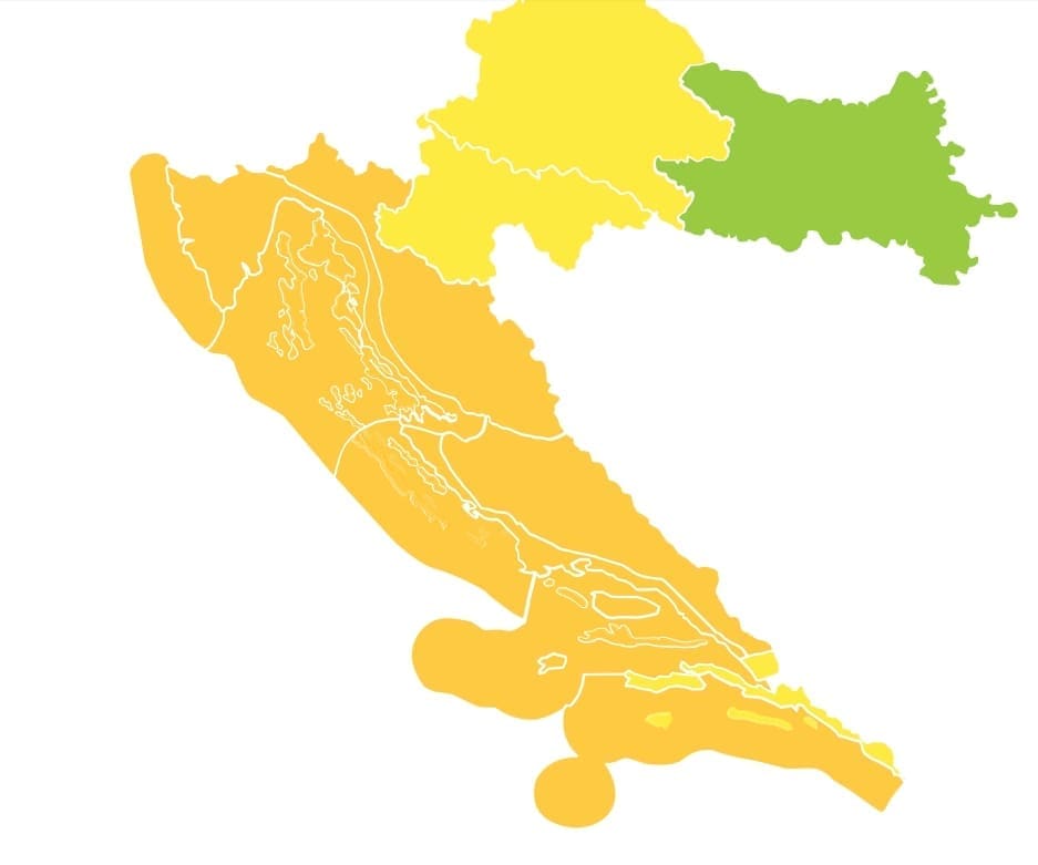 DHMZ je, unutar sustava MeteoAlarm, za petak za cijeli Jadran izdao narančasti stupanj upozorenja. Na moru se upozorenje odnosi na vjetar, a u Zagori na očekivanu obilnu kišu.