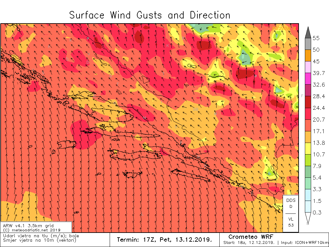 DHMZ je, unutar sustava MeteoAlarm, za petak za cijeli Jadran izdao narančasti stupanj upozorenja. Na moru se upozorenje odnosi na vjetar, a u Zagori na očekivanu obilnu kišu.