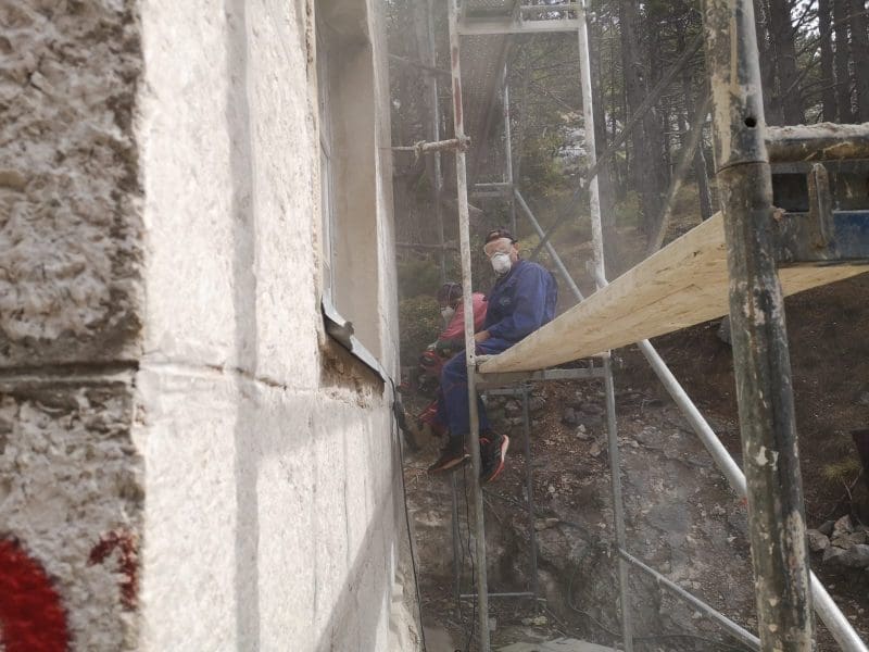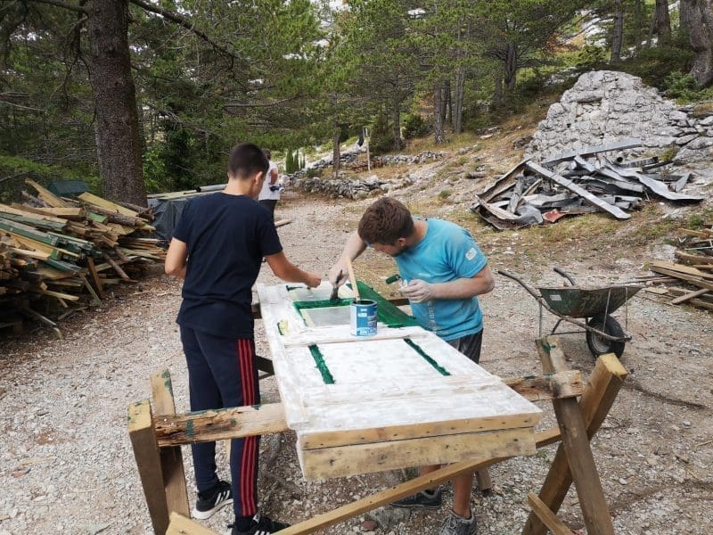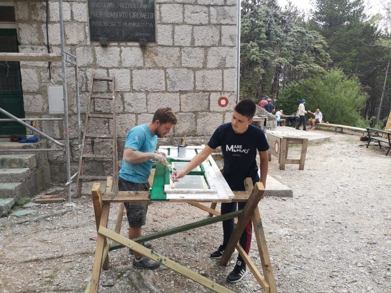 - Jučer je bila zadnja velika akcija tijekom koje se radilo na krovu, ekipa predvođena Grickom je dovršila montiranje gromobrana, postavila H nastavke za dimnjake, riješila sve što je trebalo i razmontirala skelu. I s tim je krov gotov. Mi ostali smo tijekom oba dana vikenda „šminkali“ dom, tj. brusili i bojali škure i prozore. Jakov Filipović-Čiča i Ivica Mogić-Ćile su brusili i lakirali stolove, te popravili i obojali sve klupe ispred doma. Petar Amižić i Ivan Bućan su brusili žbuku sa kamena na istočnom zidu planinarskog doma koji se ukazao kada su ga majstori krenuli sanirat i oduševio nas izgledom da smo ga odlučili ostavit tako. Sad ga treba dobro ispolirat i onda ćemo ga premazat impregnacijskim sredstvima za zaštitu. Nediljko Pivac, koji je također cijelo ljeto proveo na Mosoru, je dovršio limeni dio ove priče i postavio zadnje oluke oko planinarskog doma, a Špiro i njegova obitelj su sređivali unutrašnjost doma i okoliš koji je još pun otpada kojeg planiramo očistiti tijekom slijedećih vikenda kako bi sve bilo lijepo, čisto, uredno i spremno za svečano predstavljanje radova koje je planirano prvu nedjelju u listopadu - kazala nam je Ivana Radonić, predsjednica Planinarskog društva Mosor.