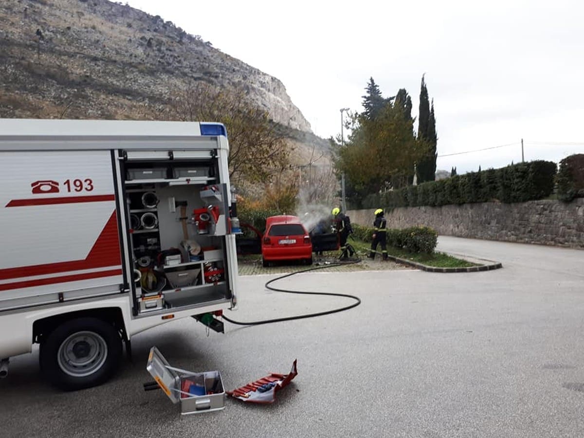 Danas oko 13 sati i 10 minuta planuo je osobni automobil u Žrnovnici kod ambulante.