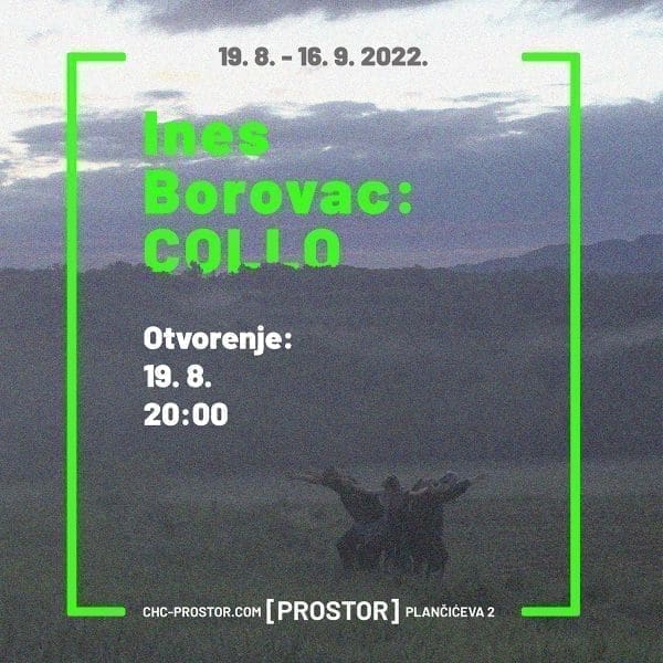 Izložba Ines Borovac: Collo otvara se u petak, 19. kolovoza u 20h i ostaje otvorena do 16. rujna 2022. te se može pogledati svakog radnog dana od 10 do 19 sati. Izložba će biti postavljena u Prostoru, na adresi Plančićeva 2, Split