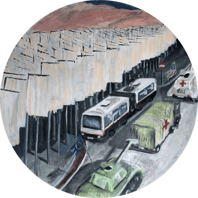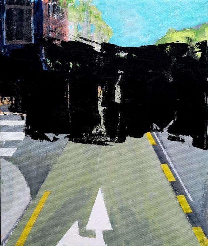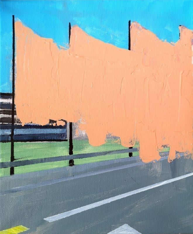 Za razliku od ovih radova, kao i onih drugih autoraica ranije navedenih, zastave koje autor izlaže u Salonu Galić lišene su partikularnih nacionalnih i državnih simbola. U njihovom likovnom tretmanu gotovo da su svedene na plohu energično nanesene boje, čime autor nastavlja svoju misiju čišćenja, ovog puta unutar same slike u kojoj imaju gotovo ulogu praznina u urbanim prikazima grada, koje manje ili više prepoznajemo, ali svakako doživljavamo kao prostore svakodnevice naših života. Stječemo dojam da je kritička refleksija otišla korak bliže samom značenju i funkciji zastava, odmičući se od konkretnih društveno-političkih sistema i granica koje ti sistemi stvaraju, postavljajući univerzalna pitanja o društveno-političkim uređenjima, pa tako i kolektivnih identiteta koje oni generiraju, unutar kojih smo i sami zatečeni.