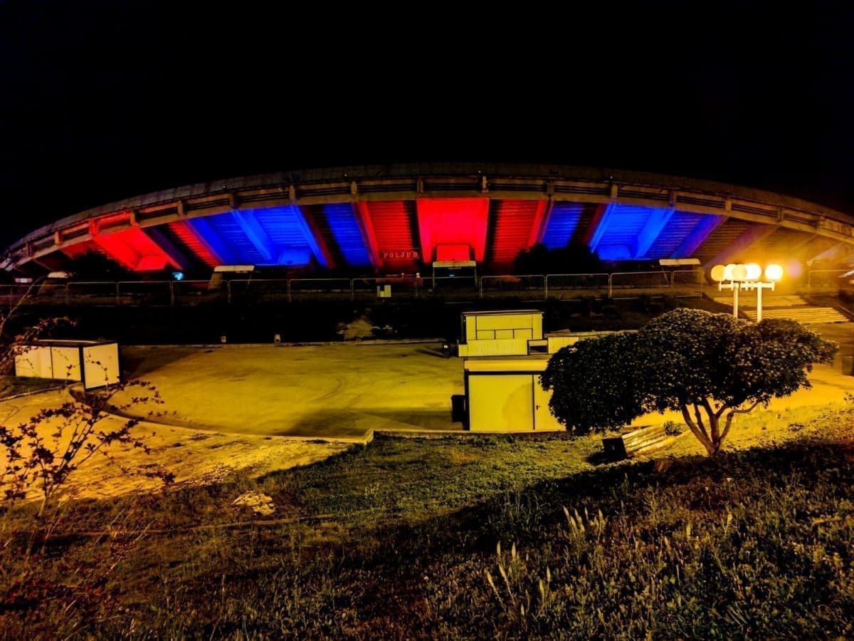 Večeras je Poljud osvanuo osvjetljen u Hajdukovim bojama u znak podrške Juniorima.