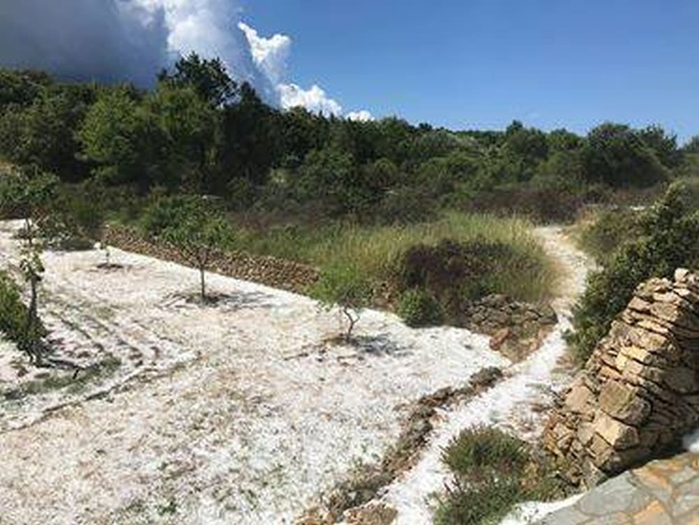 Prolazno snažno grmljavinsko nevrijeme zahvatilo je sredinom jutra središnje otoke dijelova Visa. 15-ak minuta padala je tuča koja je zabijelila krajobraz.