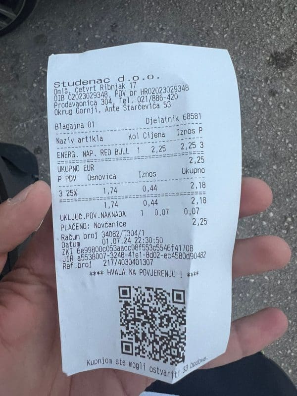 - Na energetskom piću je bila cijena 2,09 eura. Uzeo sam jedan, ali kad sam došao na blagajnu, vidim cijenu od 2,25 eura. Naravno da nije stvar u iznosu nego u principu pa kada sam to kazao prodavačici, odbili su priznati krivnju i naplatiti mi proizvod po označenoj cijeni - kaže nam čitatelj.
