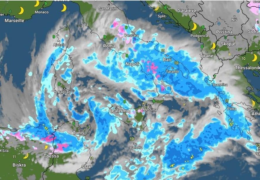 Četvrtak je donio predah od ciklone, iako se to ne bi reklo ako ste danas pogledali na barometar. Naime, tlak zraka je prilično snižen, kao da se nalazimo usred ciklone i na razini mora iznosi samo 995 hPa. Ipak, tijekom dana je prevladavalo vedro što je dokaz da neku konkretnu vrijednost tlaka zraka ne možemo vezati uvijek uz neki tip vremena. Kod ovako niskog tlaka zraka obično biva oblačno s oborinama, no sustavi su tako posloženi nad Europom da nam je i ciklona danas donijela stabilno vrijeme. U isto vrijeme, snažan ciklonalni vrtlog centrom se trenutno nalazi između Sicilije i Tunisa. Zanimljivo, trenutno u velikom dijelu Tunisa i Alžira pada snijeg, a snijega dosta nisko ima na Sardiniji i Siciliji.