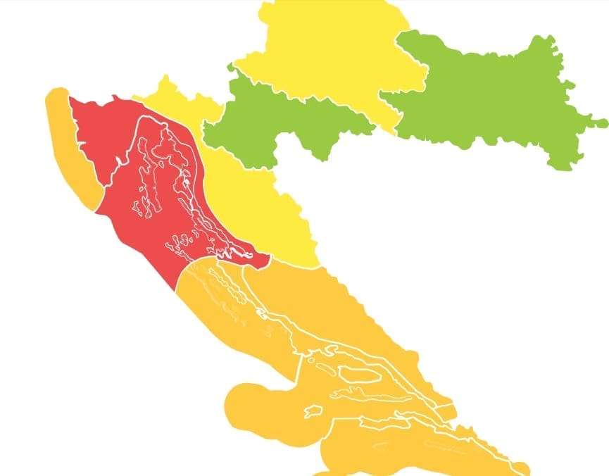 DHMZ je, unutar sustava MeteoAlarm, za petak proglasio narančasti stupanj upozorenja na buru za cijelu Dalmaciju, a crveni za dio sjevernog Jadrana.