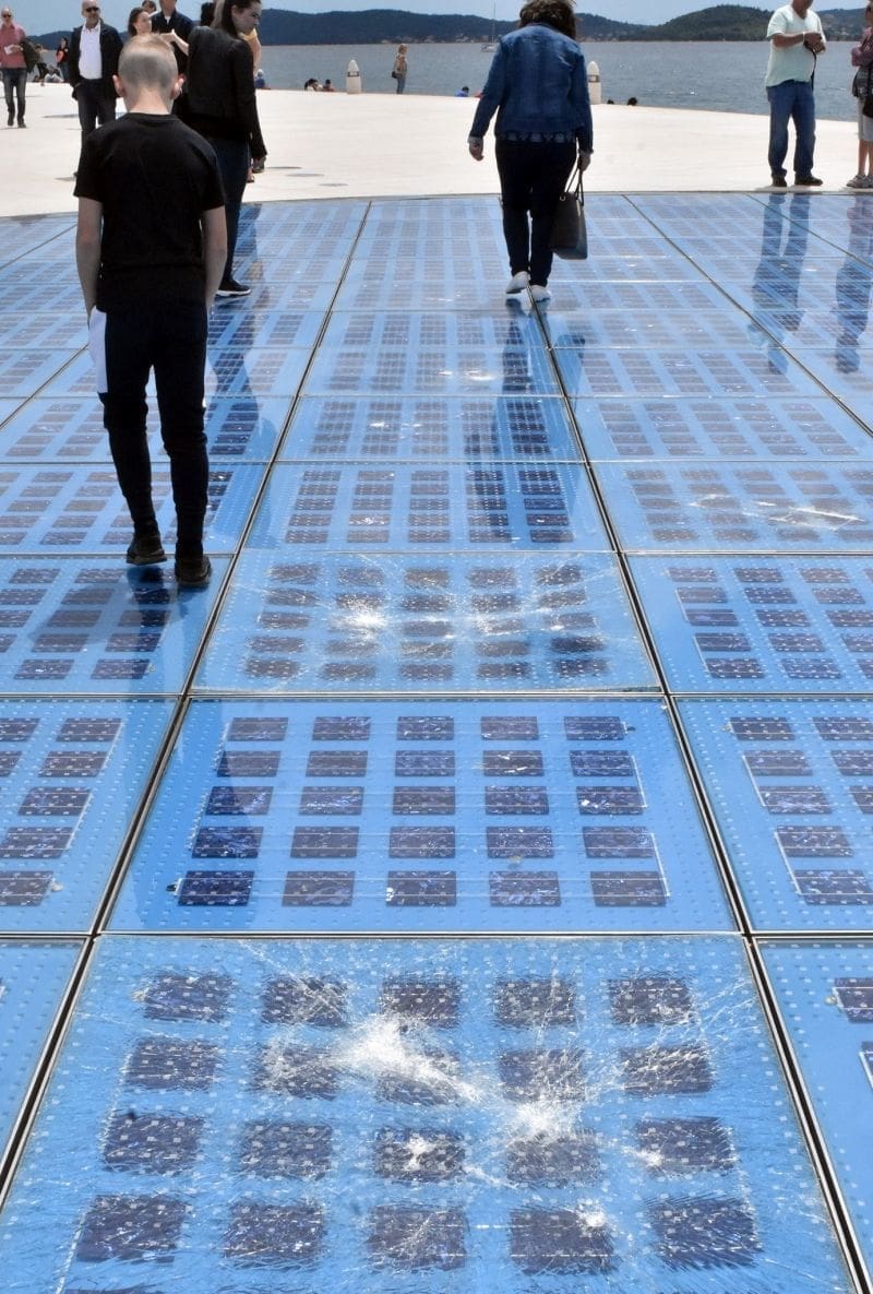 Iza njega su ostali vidljivi tragovi polomljenog stakla na skupim fotoćelijama svjetski poznate zadarske instalacije.