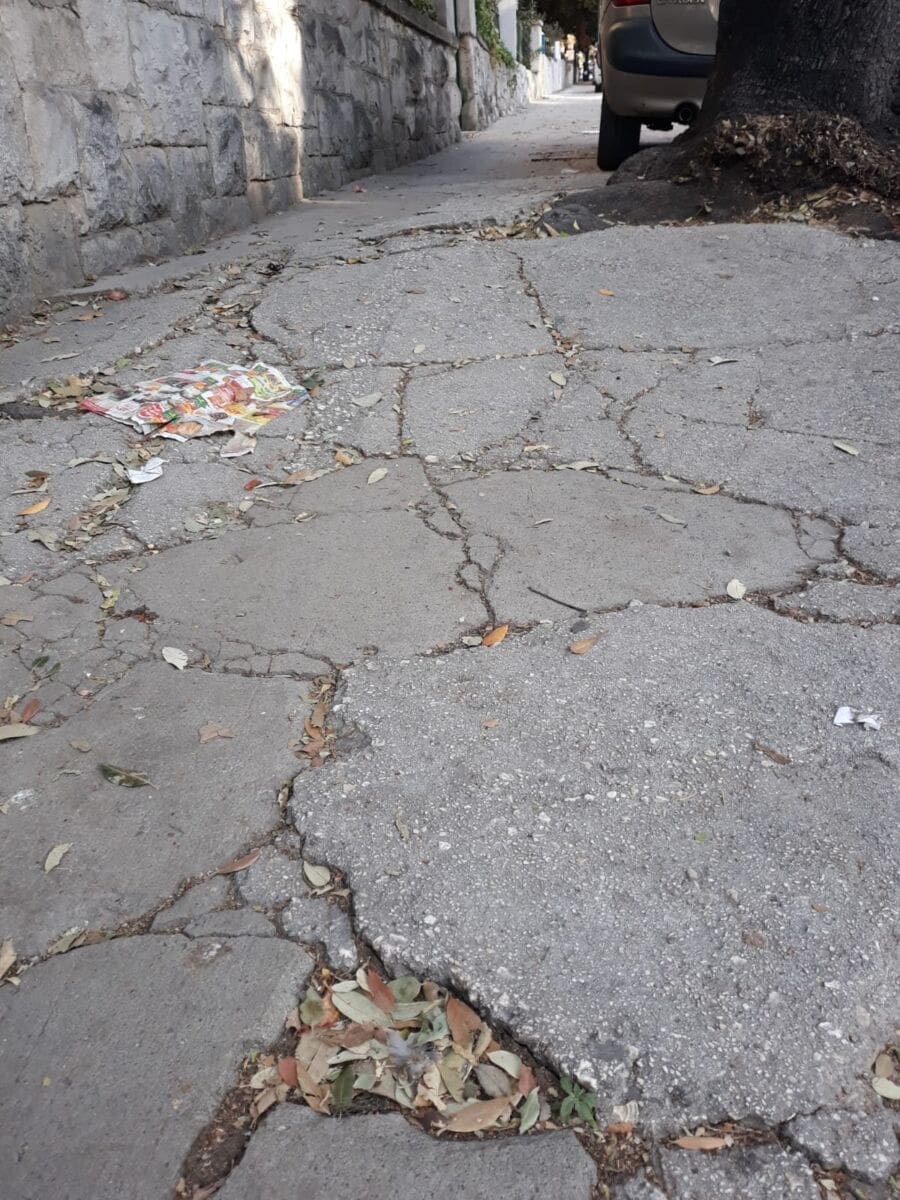Iz Vukovarske ulice u Splitu stižu nam fotografije nogostupa koji je u katastrofalnom stanju. Kako kaže naš čitatelj, nogostup je na potezu od škole Manuš do križanja ispod Higijenskog zavoda potpuno razrovan.