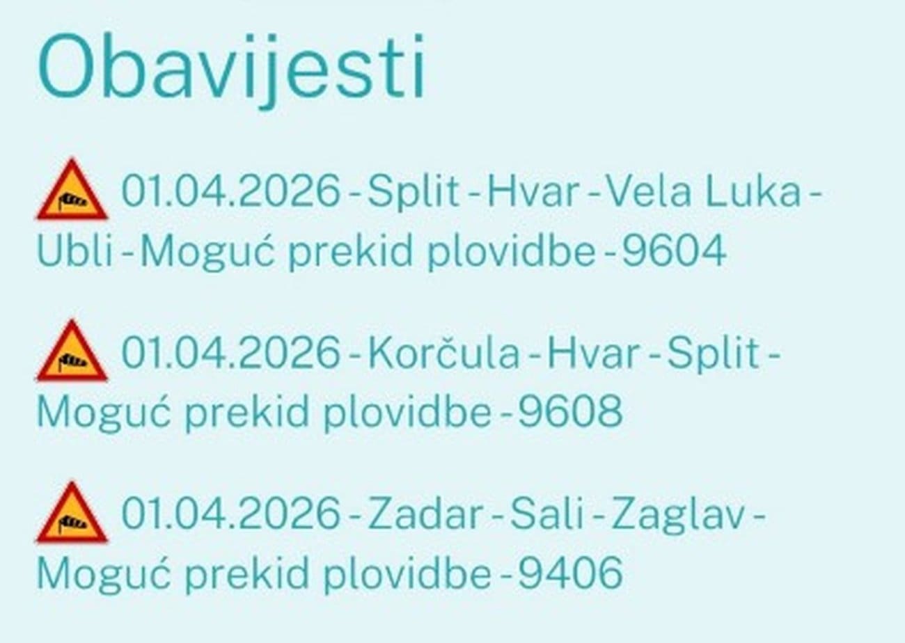 Putnicima se savjetuje da prije putovanja provjere najnovije informacije i red plovidbe, budući da su moguće dodatne izmjene.