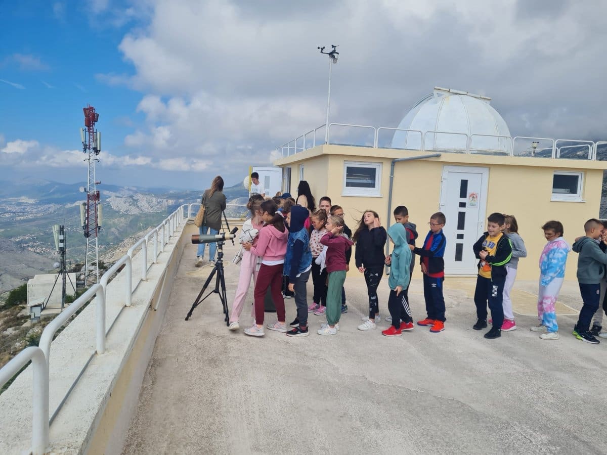 Obilazak se potom nastavio do izvora Mali Dibić koji se nalazi nedaleko od Zvjezdarnice, na 630 m nadmorske visine. Nakon toga su se učenici upoznali s malom špiljom, koja se nalazi tik ispod Zvjezdarnice. U Zvjezdarnici je učenike dočekalo predavanje iz astronomije o Sunčevom sustavu, prilagođeno njihovom uzrastu. Predavanje je održao Duje Barić, član Zvjezdanog sela Mosor i član astronomske sekcije Fizikalnog društva Split te student splitskog PMF-a. Potom je uslijedilo promatranje okoliša, panoramskim teleskopom s terase Zvjezdarnice.