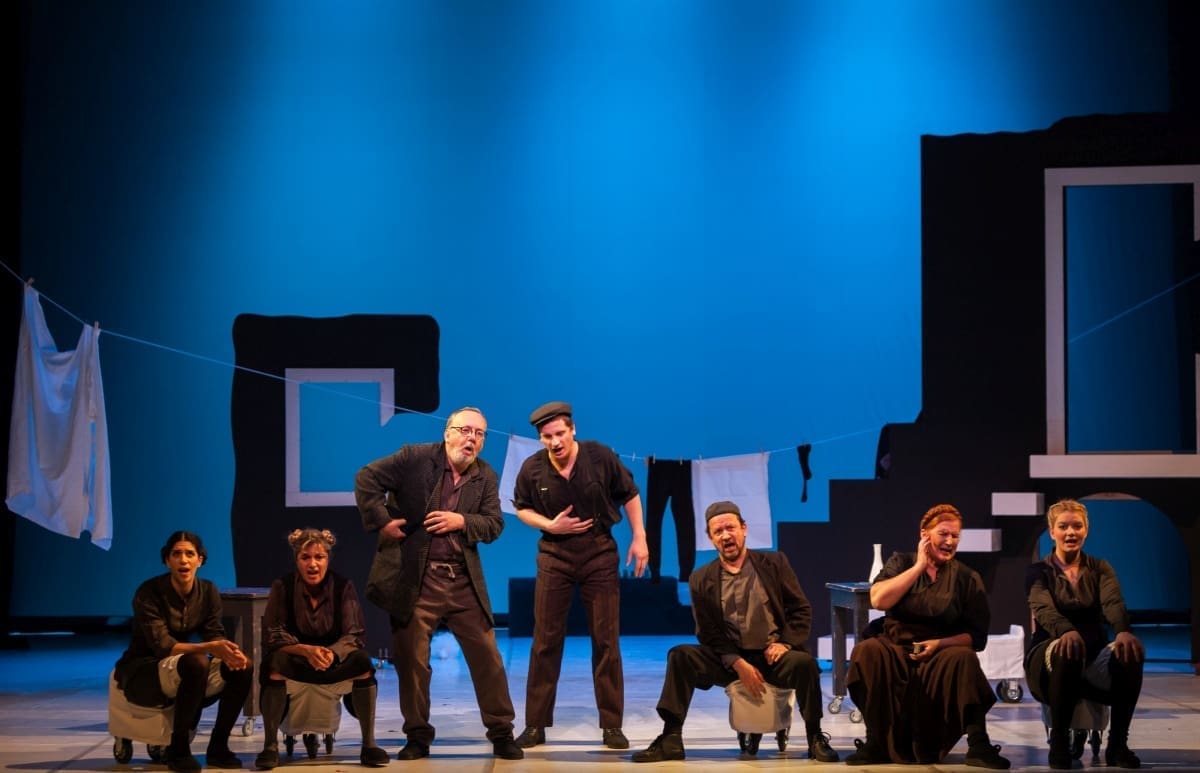 U predstavi igraju glumci splitskog kazališta: Arijana Čulina, Nenad Srdelić, Snježana Sinovčić Šiškov, Petra Kovačić Pavlina, Stipe Radoja, Monika Vuco, Trpimir Jurkić i Domagoj Mijić. Autorski tim osim autora adaptacije i redatelja Trpimira Jurkića čine još i suradnik režije Goran Golovko, autorica glazbe Nela Bujas Luketić, kostimograf Mladen Radovniković, Trpimir Jurkić kao autor stihova, te oblikovatelji svjetla i tona Srđan Barbarić i Željko Mravak.