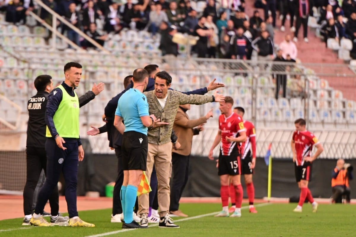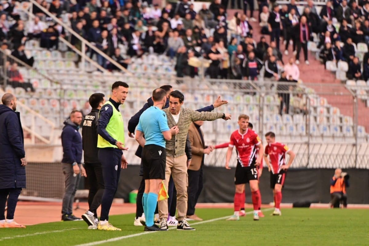 Bijeli su potom glasno protestirali nakon što je lopta pogodila Mersinaja u ruku u njegovu šesnaestercu, bez sudačke intervencije, iako su Sahiti i Livaja inzistirali na objašnjenju. U 23. minuti Mikanović je zaradio isključenje nakon istodobna skoka s Leovcem koji je sudac ocijenio kao prekršaj za drugi žuti karton. Nije prošlo dugo i Lokomotiva je iskoristila svoju priliku. U 26. minuti Mudražija je u gužvi zabio glavom nakon Čopova dodavanja, pritom gestikulirajući prema Torcidi, što je prije svih isprovociralo Hajdukova kapetana Livaju.