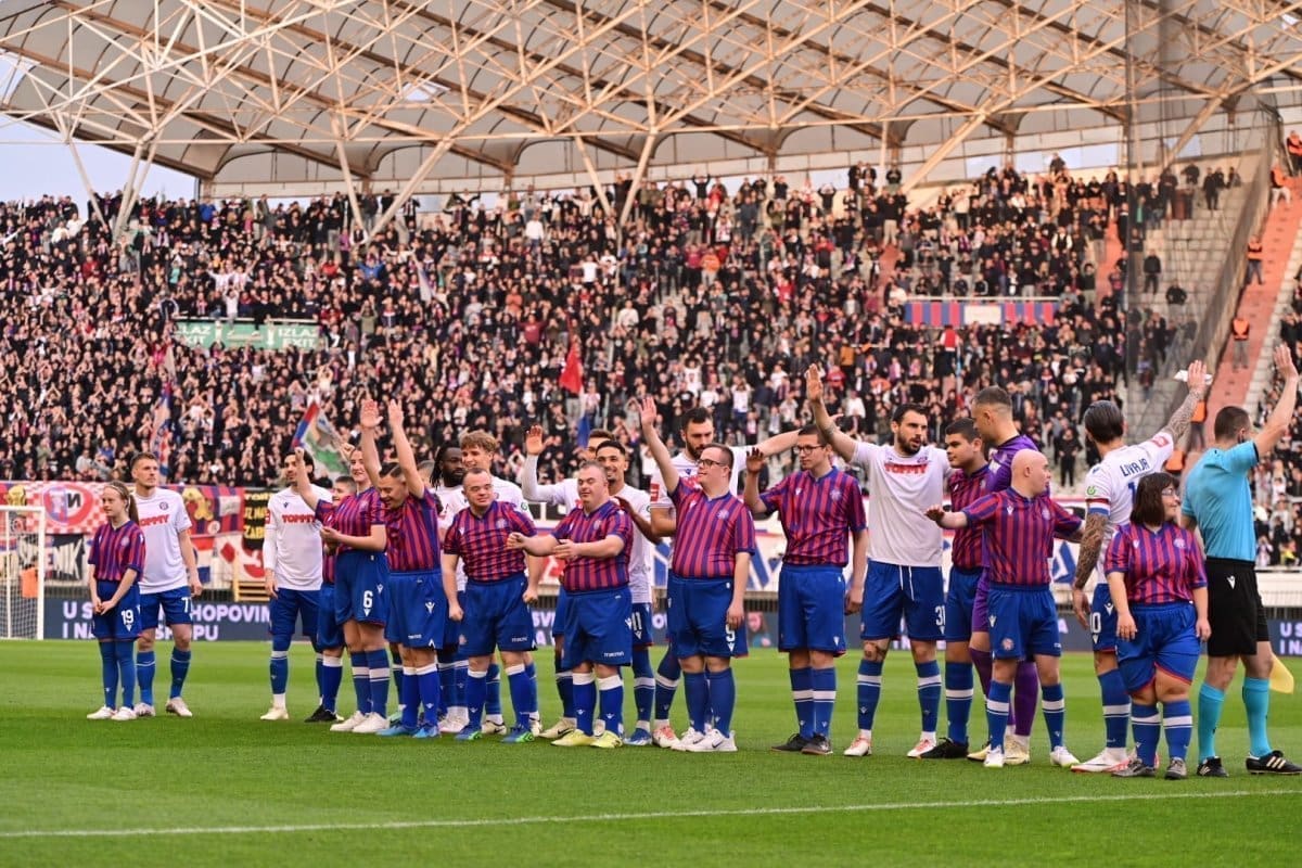 Hajduk i Lokomotiva od 19:10 na Poljudu odmjeravaju snage u dvoboju 27. kola SuperSport HNL-a. U prethodnom je kolu Hajduk u gostima uvjerljivo porazio Goricu s tri gola u mreži, a Lokomotiva je bila jednako uspješna protiv Rudeša. Strateg Bijelih u ovome susretu ne može računati na ozlijeđene Melnjaka, Žapera, Uremovića i Brekala. Dirljiva uvertira u ovaj susret bilo je obilježavanje Svjetskog dana Down sindroma koje je popraćeno pljeskom cijelog stadiona.