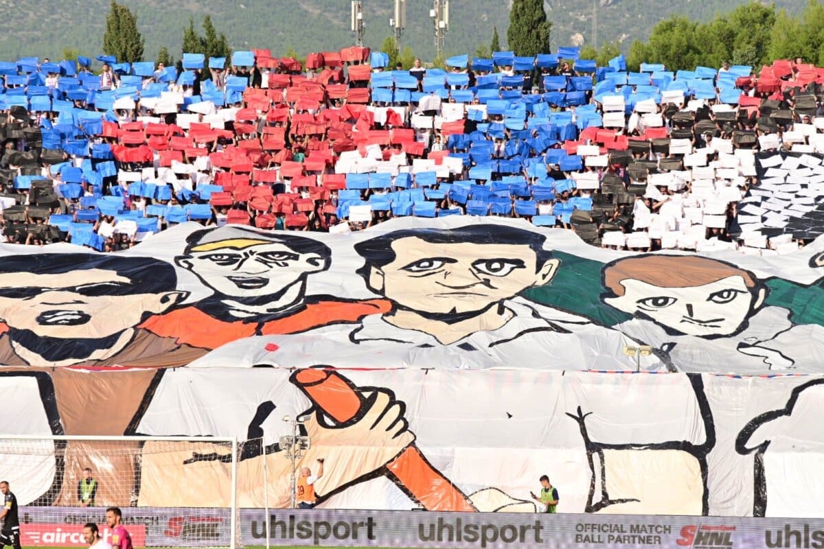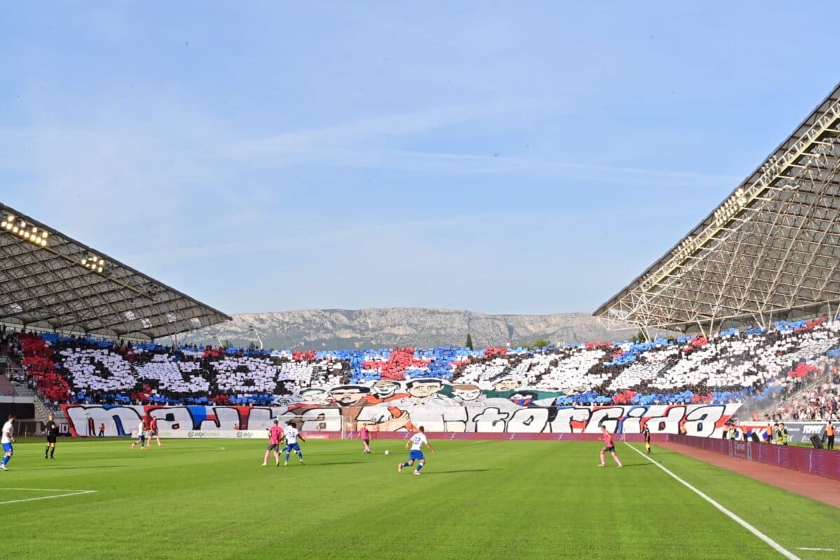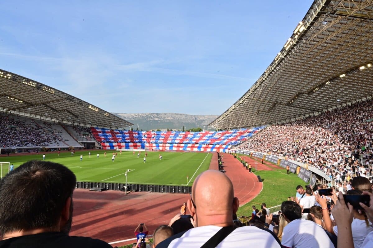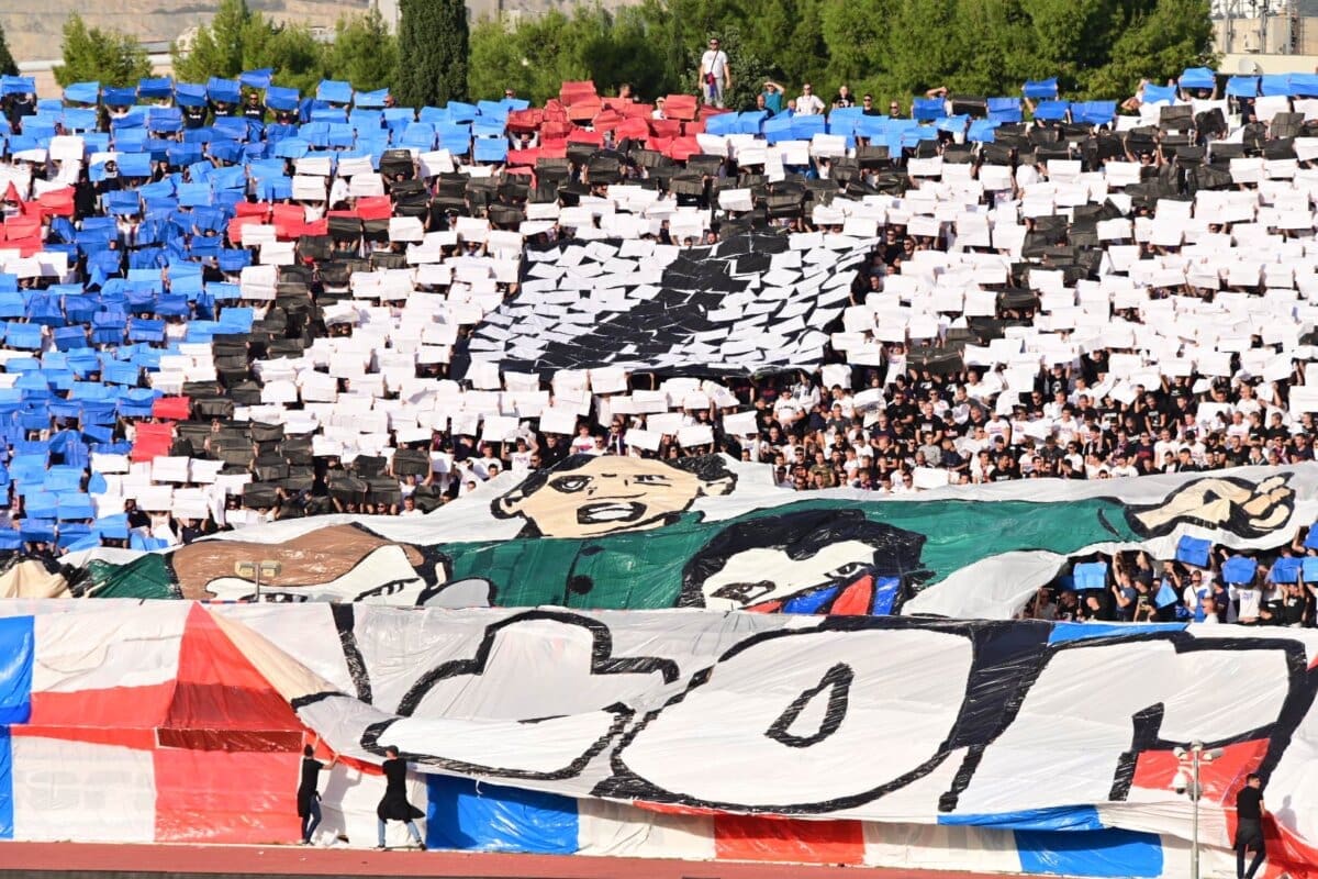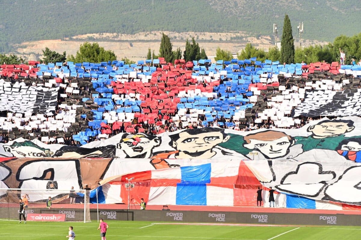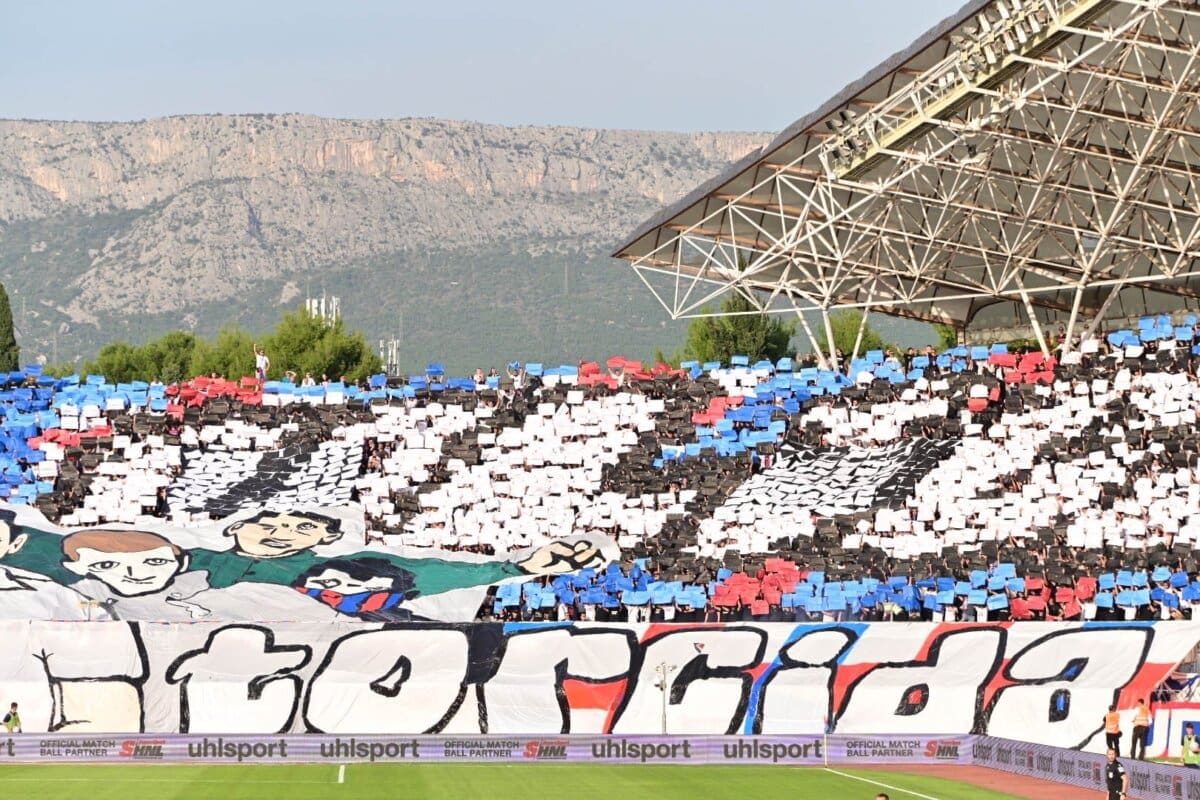 Pred sam početak susreta cijeli je Poljud odao počast preminulim članovima minutom šutnje, a Torcida je uoči 74. rođendana razvila još jednom maestralnu koreografiju preko cijelog sjevera i zapjevala „Moj život je kockanje“. Koreografija se potom promijenila u „OTAC ULICA, MAJKA TORCIDA“.
