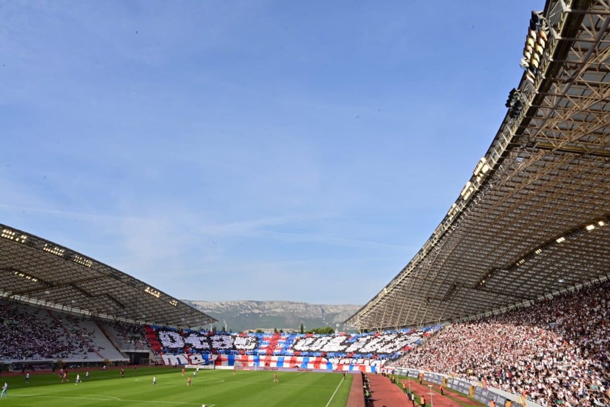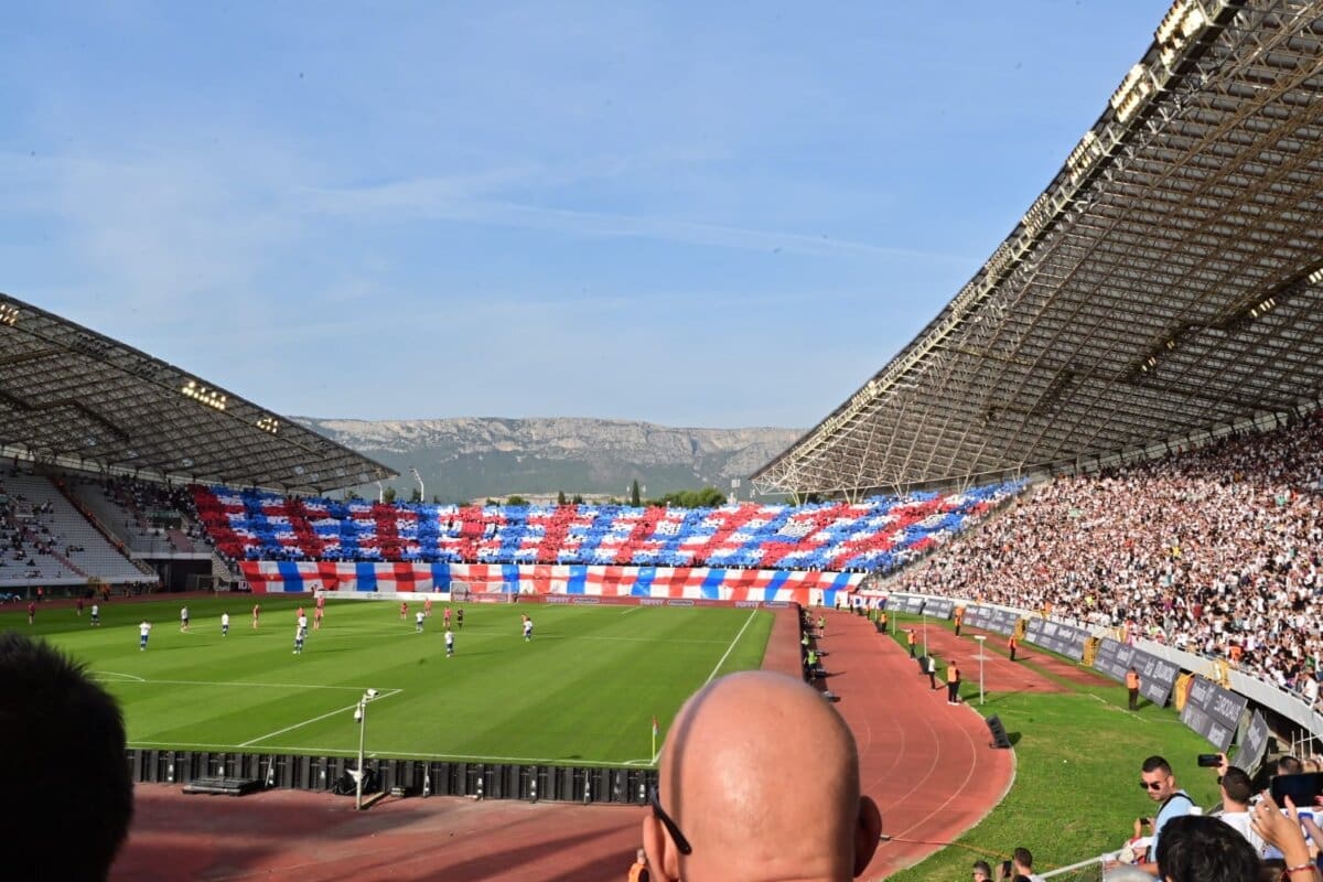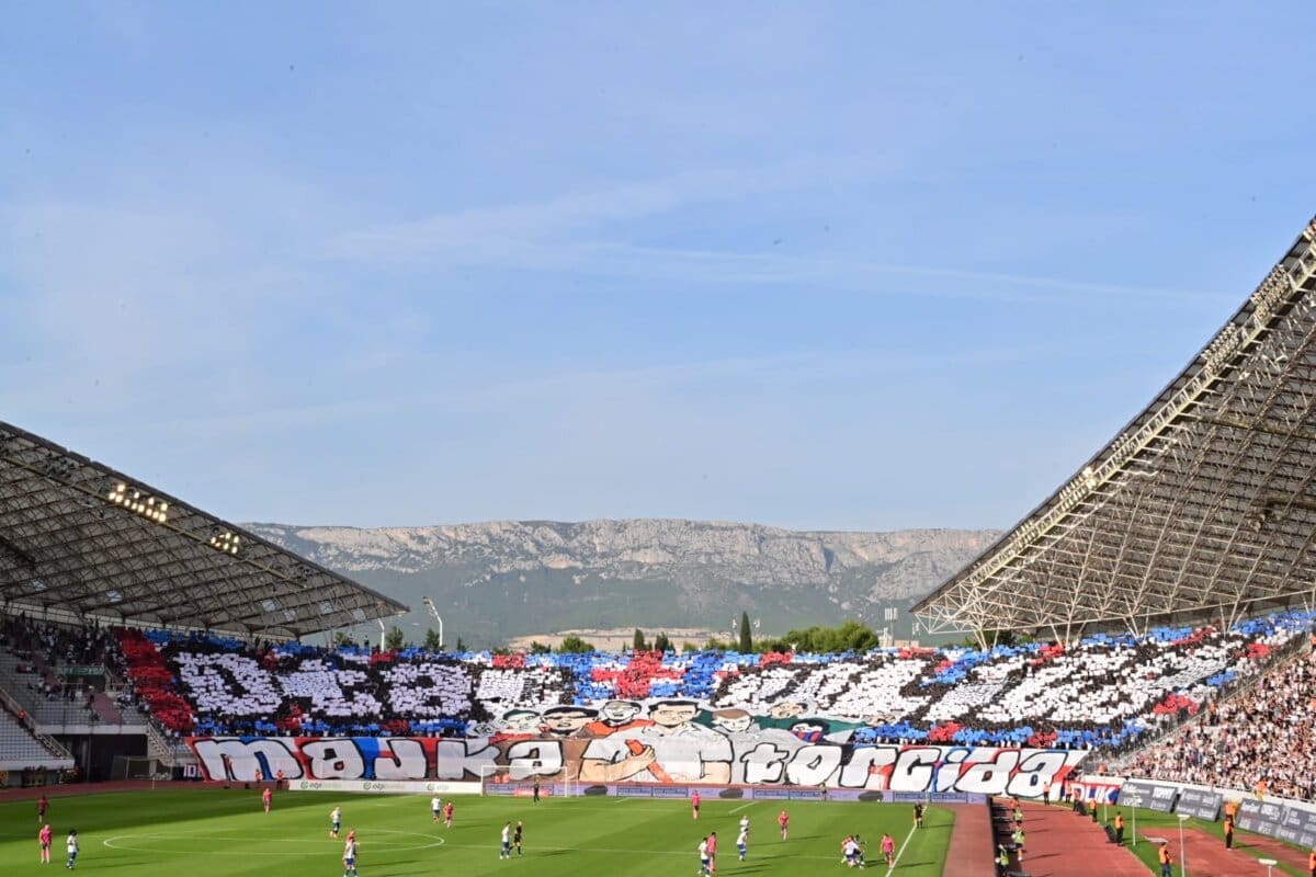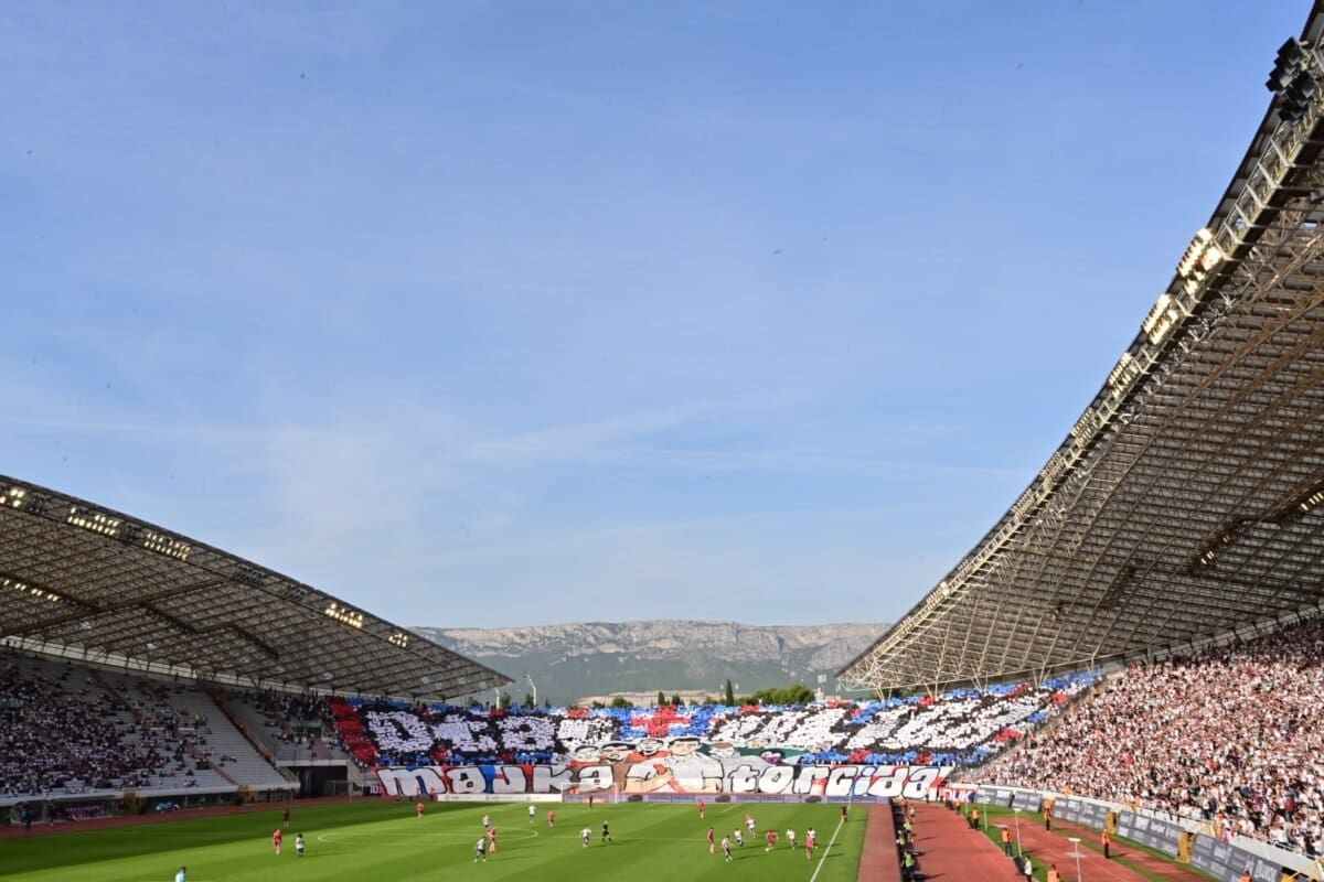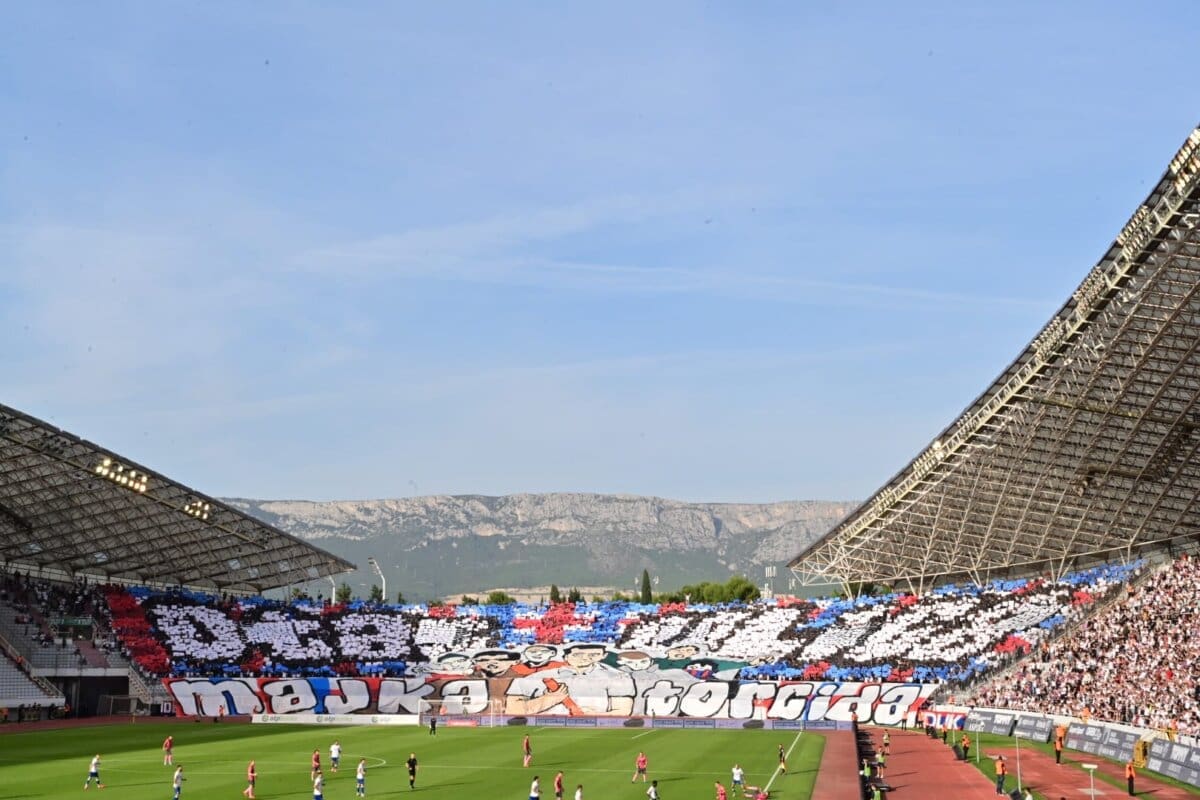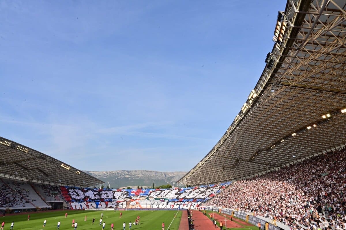Pred sam početak susreta cijeli je Poljud odao počast preminulim članovima minutom šutnje, a Torcida je uoči 74. rođendana razvila još jednom maestralnu koreografiju preko cijelog sjevera i zapjevala „Moj život je kockanje“. Koreografija se potom promijenila u „OTAC ULICA, MAJKA TORCIDA“.